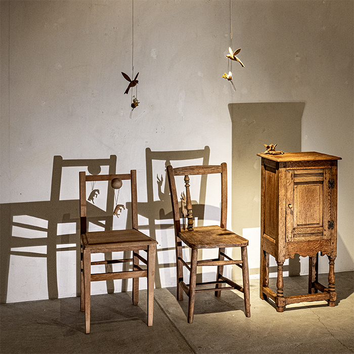 ヨーロッパで入手したヴィンテージの家具や木彫りの動物のオブジェを組み合わせ、物語性のある人気作品を生み出す「krank/クランク」。チェアや照明のほか、飾りやすいオブジェも。『エル・デコ』のための作品を10月6日まで期間限定で抽選販売中。抽選に参加し、この機会にぜひ手に入れて!