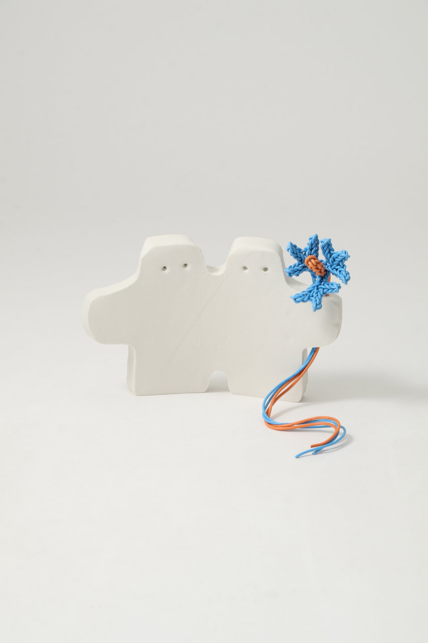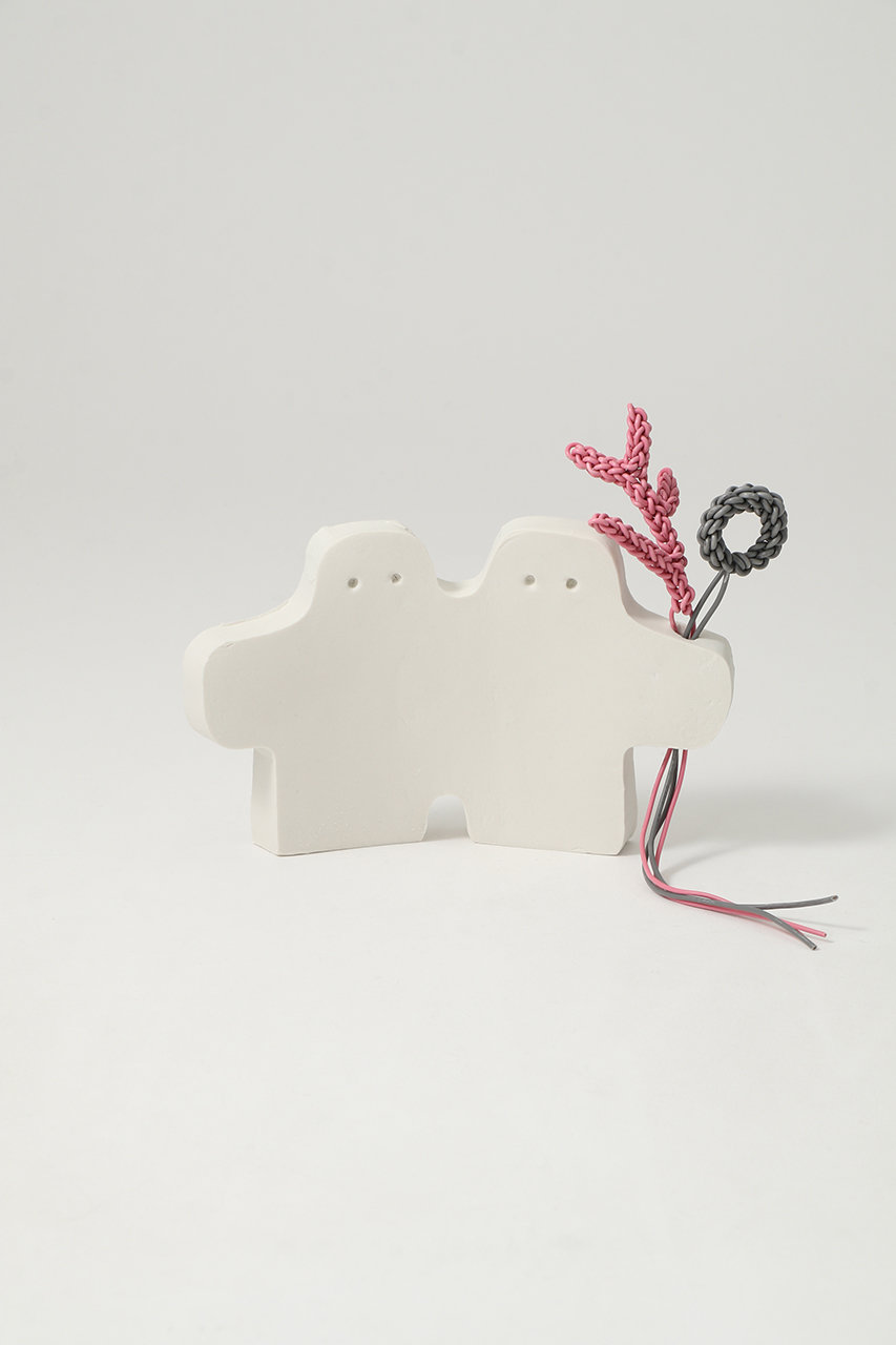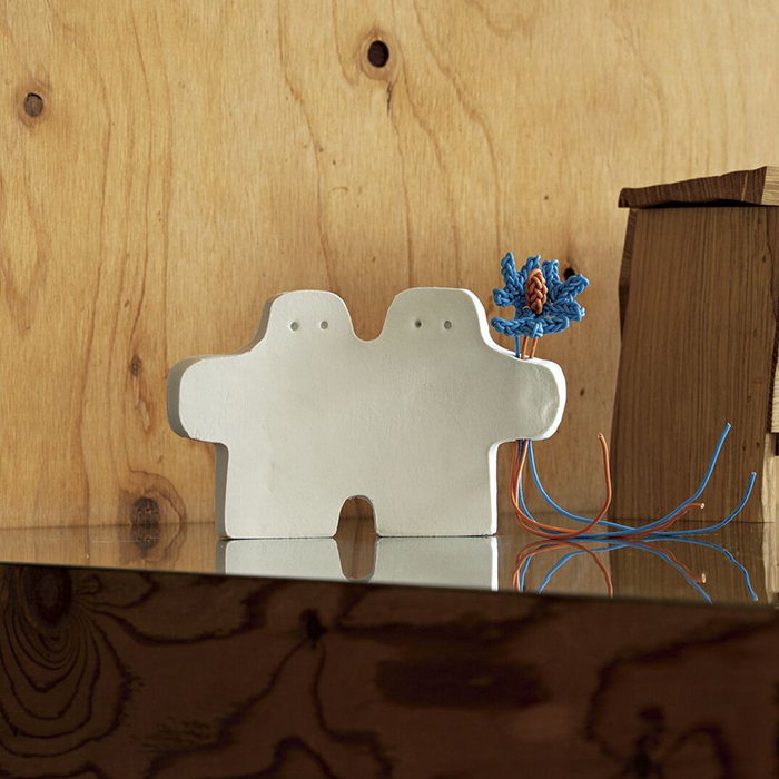 日本を拠点とする八木沢俊樹さんと韓国を拠点とするイ・カンホさん。世界を舞台に活躍する2人のデザイナーによるスペシャルピースを予約受付中。つぶらな瞳が愛らしい、人が手をつないだようなアイコニックなオブジェ「i×i(アイバイアイ)」に、イ・カンホさんが編んだ花のようなオブジェを持たせた作品で、見る人を温かい気持ちにしてくれます。