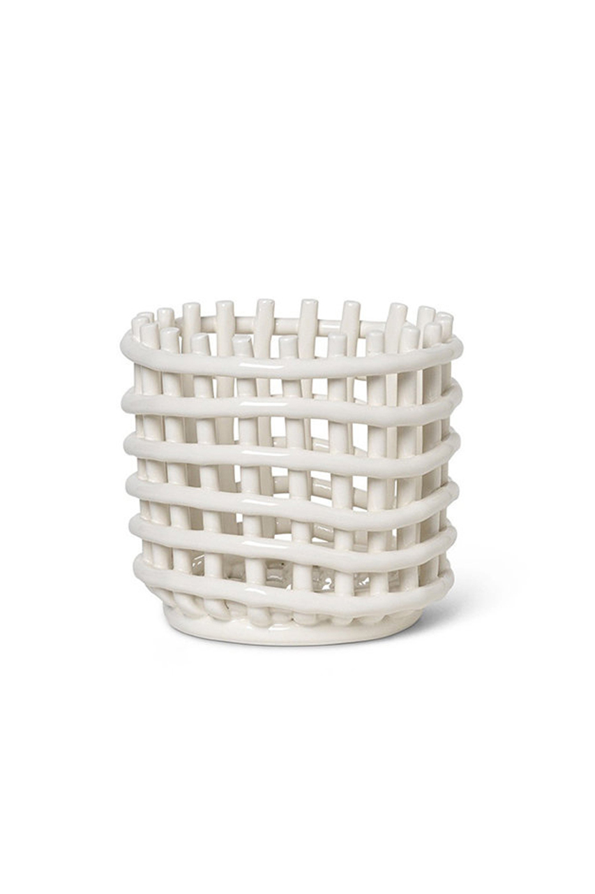 デンマーク発、「ferm LIVING/ファームリビング」の、職人の手作業によって作られる陶器製のバスケットとセンターピースは、釉薬のぽってりとした艶と、ずっしりとした重みが魅力。たたずまいが美しく、リビングやダイニング、バスルームなどあらゆる空間がアートな雰囲気に。