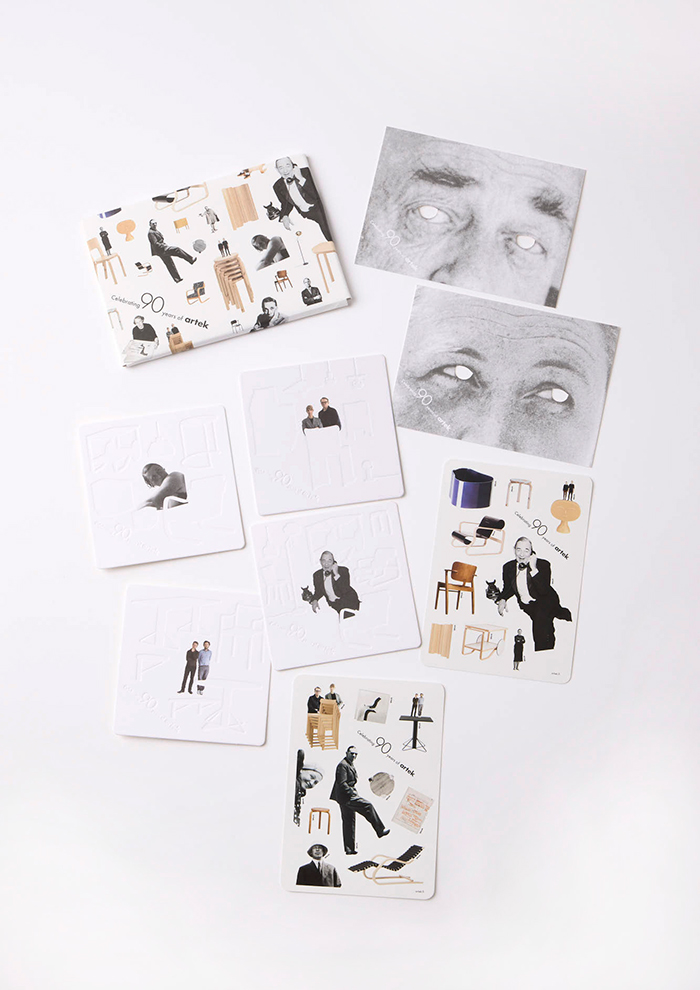 いま「アルテック」のアイテム3万円(税込)以上を購入で、アルテック創業90周年を記念した、購入者限定の特別なスモールギフト(非売品)をプレゼント。ステッカー2枚、コースター4枚、アルヴァ・アアルトとアイノ・アアルトのお面にもなるポストカード2枚が封筒に入った特別セットです。この機会にぜひ「アルテック」のアイテムを手に入れて!
