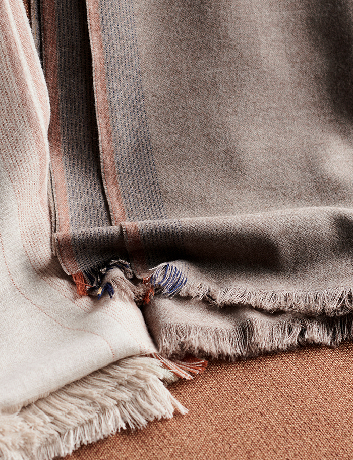 デンマーク発のラグジュアリーテキスタイルブランド「エルヴァン デンマーク」。上質なアルパカウールを贅沢に使った極上の肌触りと洗練されたデザインが魅力。デザインやカラーが豊富なので、その日の気分で使い分けたい! 織りのストライプがさりげない、デンマークのデザイナー、セシリエ・マンツとのコラボレーションアイテムもチェック。