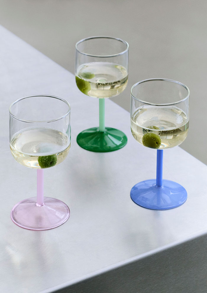 人気の「Tint Wine Glass Set of 2」に新色が登場! ステムの色をアクセントにしてテーブルコーディネートを引き立てたい。ホームパーティーはもちろん、普段使いとしてソフトドリンクやビールを入れても。プレゼントにも喜ばれる、ペアセットのワイングラスです。