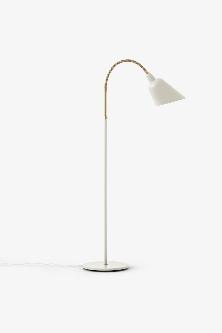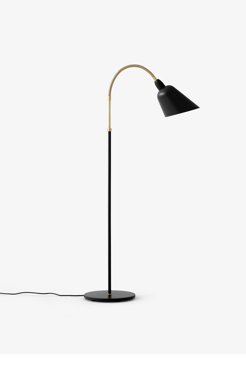 斜めにカットされたシェードが特徴の、巨匠アルネ・ヤコブセンによる「ベルビュー フロアランプ」。北欧ブランドの家具と相性が良いのはもちろん、さまざまなテイストの空間になじみ、置くだけで洗練度がアップします。