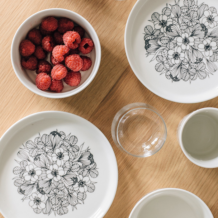 映画「かもめ食堂」に登場し一躍大人気になった「ARABIA/アラビア」のシリーズ。放射状に細かな線が施された、シンプルなのにどこかホッとするような絵柄が特徴です。パスタや和食はもちろん、どんな料理にもフィット。