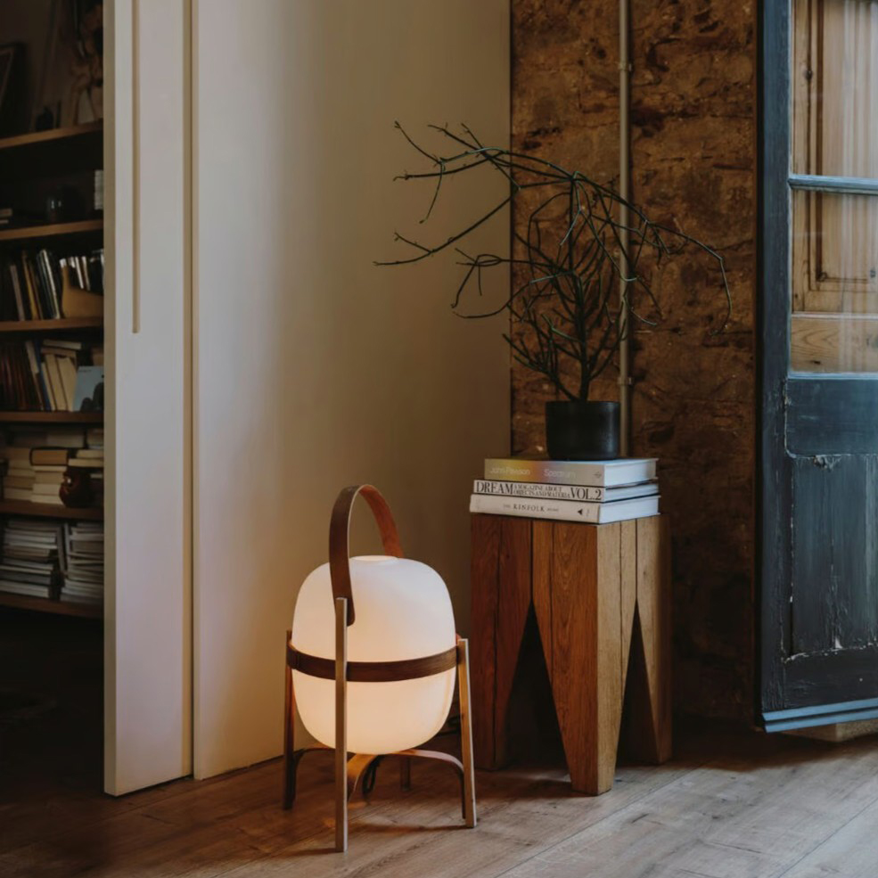バルセロナを拠点に、温かみのある光を追求している「サンタ&コール」。スペイン語で「バスケット」を意味し、和の空間にも合う「セスタ」、「セスティタ」は、職人が手作業で曲げたチェリーウッドのフレームが特徴。床に直置きしても絵になるたたずまいです。「マーヤ」は、シェードの光と影のグラデーションが美しく、エレガントな雰囲気。