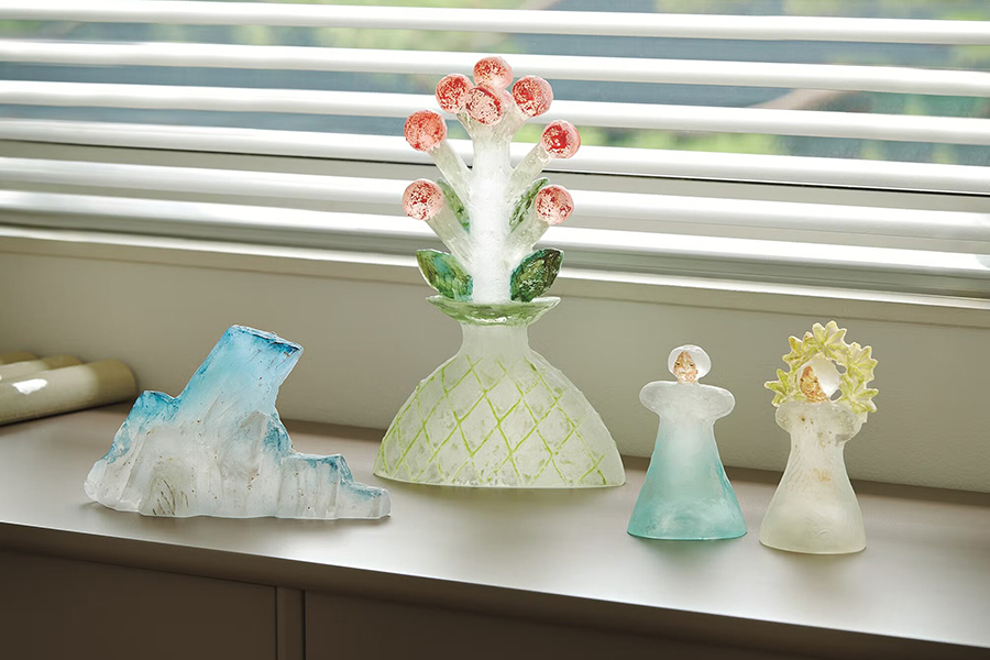 根強いファンも多いガラス作家、安達知江さんのガラスオブジェがまとう、透明感と唯一無二の存在感。置き方も飾り方も自由。美しいガラス作品をさりげなく飾ってみて。