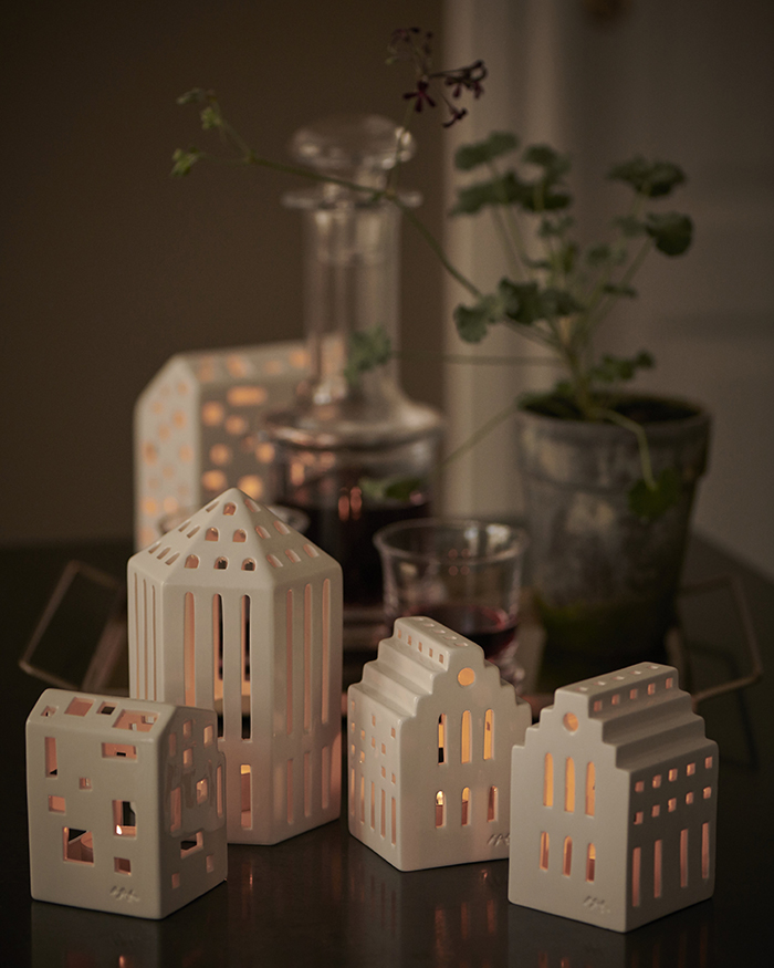 伝統あるデンマークの陶磁器ブランド「ケーラー」の「アーバニア」シリーズ。中にキャンドルを入れて灯すと、1 つ1 つハンドメイドでくり抜かれた窓からは、温かく優しい光が漏れだします。