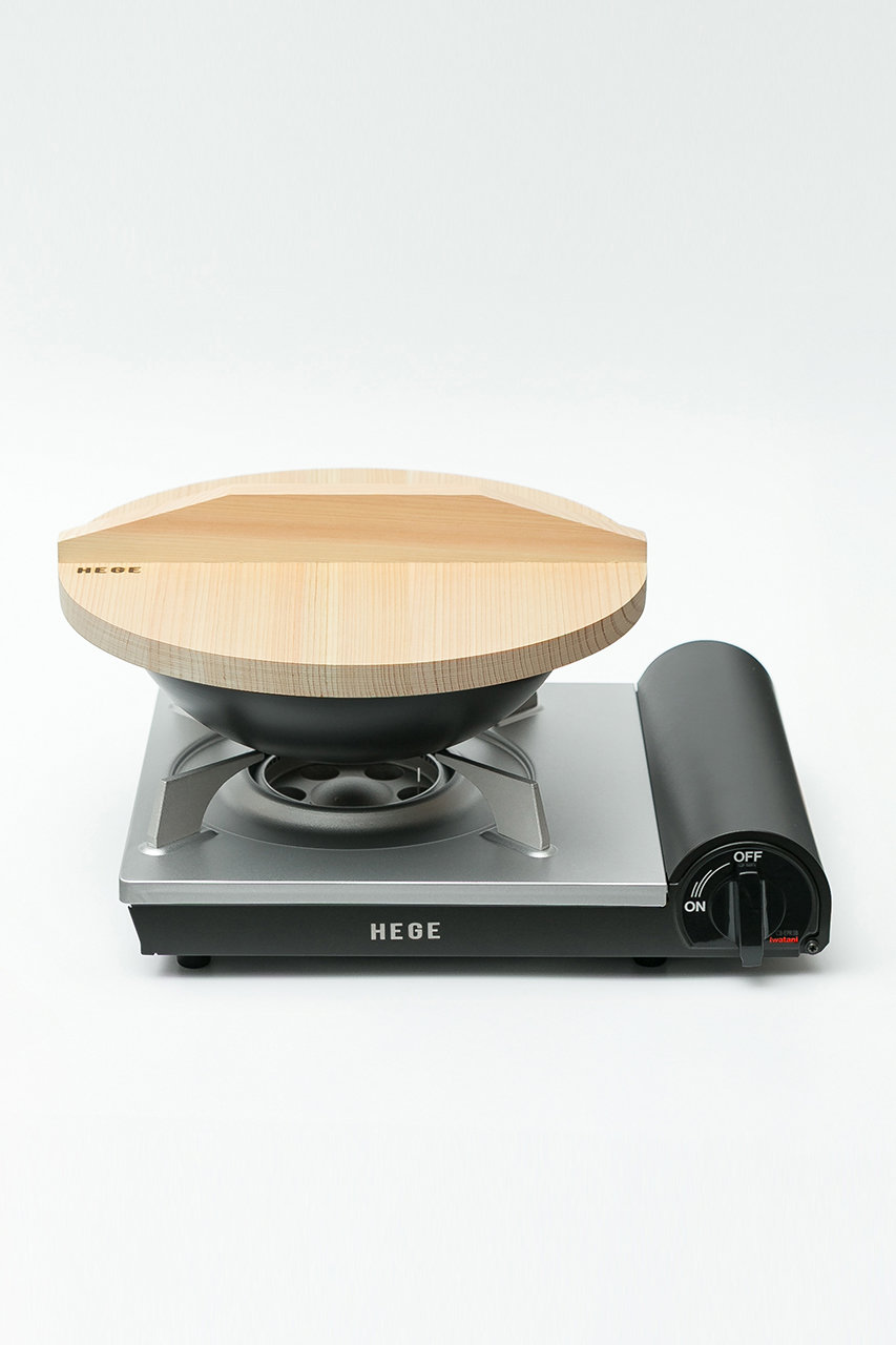 HEGEの刻印ロゴが入った「イワタニ カセットフー エコプレミアム」のセットも。ダイニングの上で調理しながら、アツアツの料理を食べられます。色々な調理器具や食器を揃える必要がなく、忙しい新生活にもおすすめです。