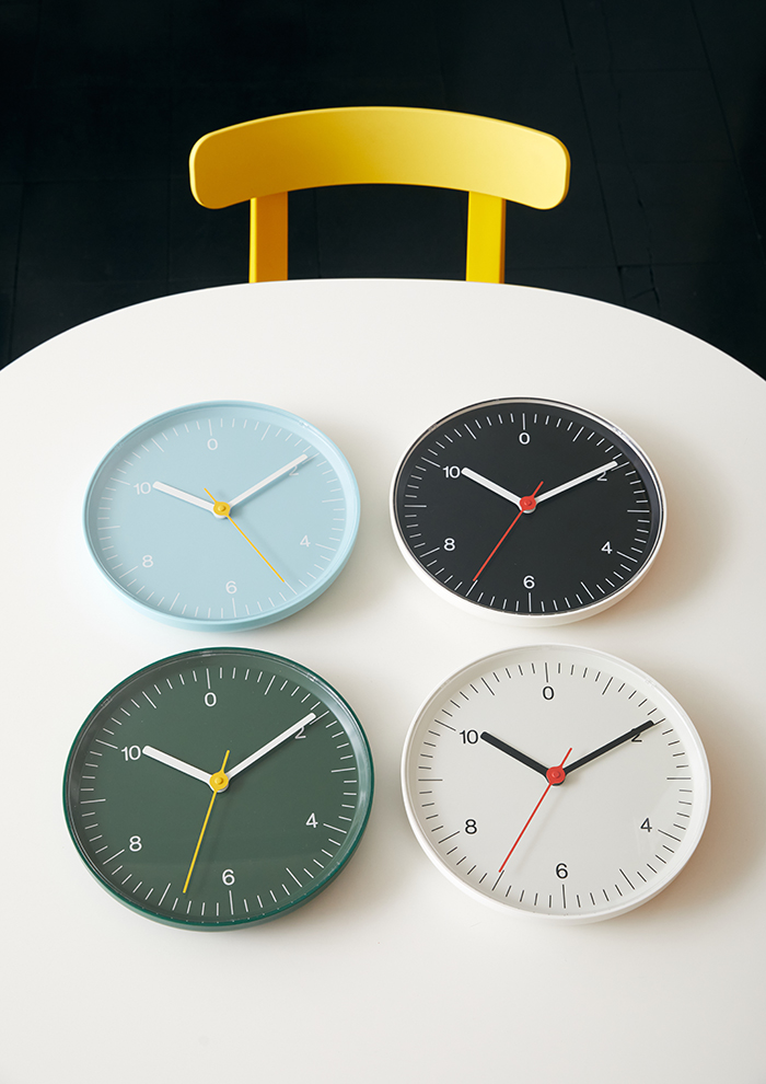 イギリスの著名なデザイナーであるジャスパー・モリソンによってデザインされた「ヘイ」のウォールクロックとテーブルクロック。無駄をそぎ落としたシンプルなデザインで、どんな空間にも溶け込みます。テーブルクロックは、スタンドが取り外し可能なため、テーブルに置くことも壁に掛けることもできます。
