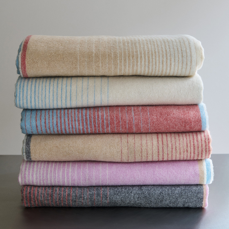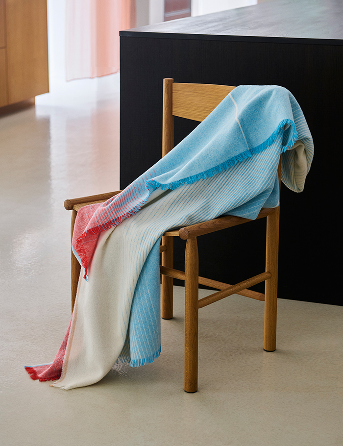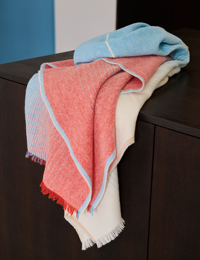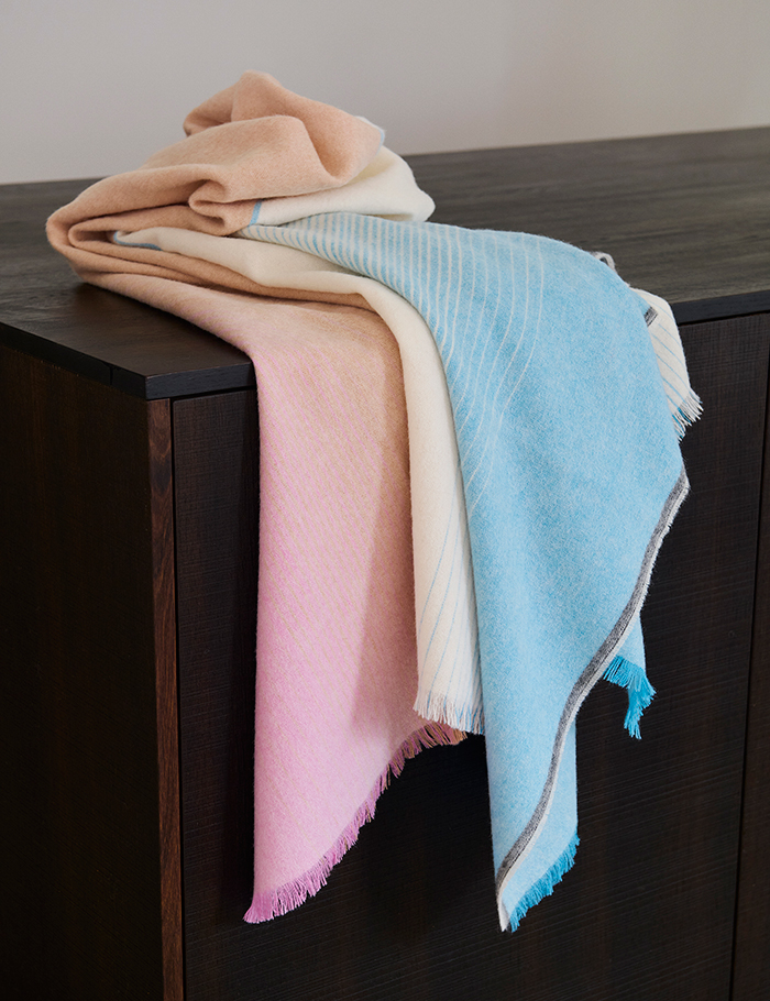 素材にはやわらかく使い心地の良いリサイクルウールが使われていて、スローは春夏の肌寒い朝晩や冷房対策にもおすすめ。クッションは2サイズをラインナップ。なにげなく置いてあるだけでも、インテリアに洗練さを加えてくれます。