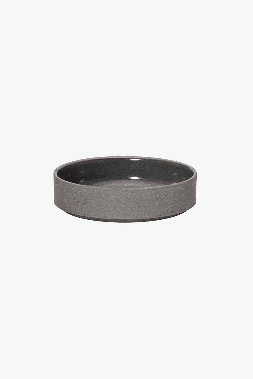 外側はマットな質感のコンクリートのようなグレーカラー。内側はダークグレーの釉薬でコーティングされていてつるりと滑らか。それぞれ5サイズずつあるプレートやボウルはさまざまなジャンルの料理とマッチして、テーブルコーディネートが洗練!