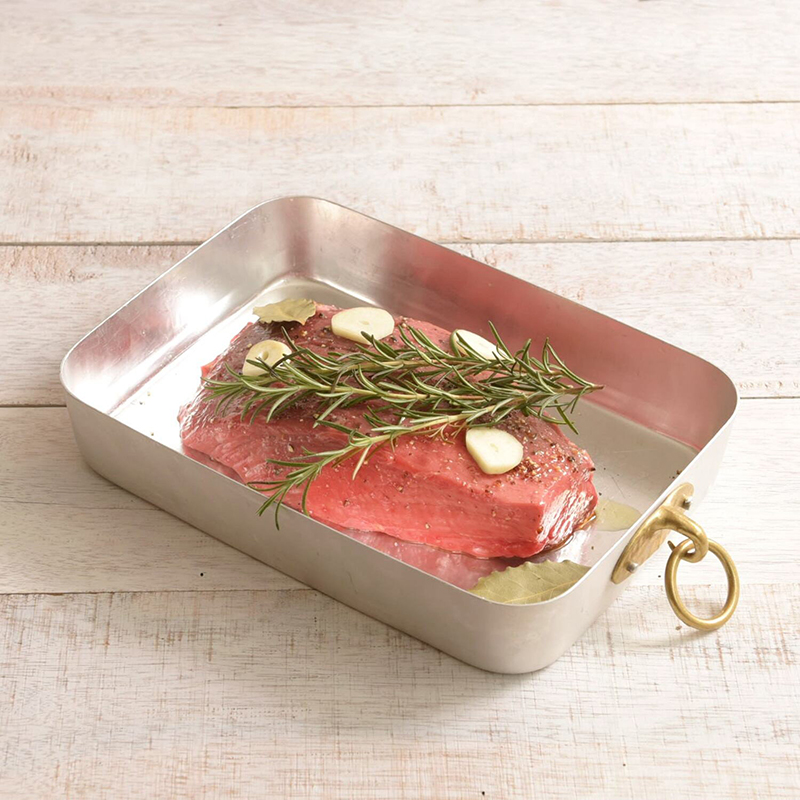熱伝導性が良いので、このままオーブンに入れてラザニアやグラタン、肉や魚のローストなどにも使える「レクタングルベイカー」。テーブルにそのまま置いても映えるデザインで、料理用以外にもカトラリーや小物を収納してもおしゃれ◎
