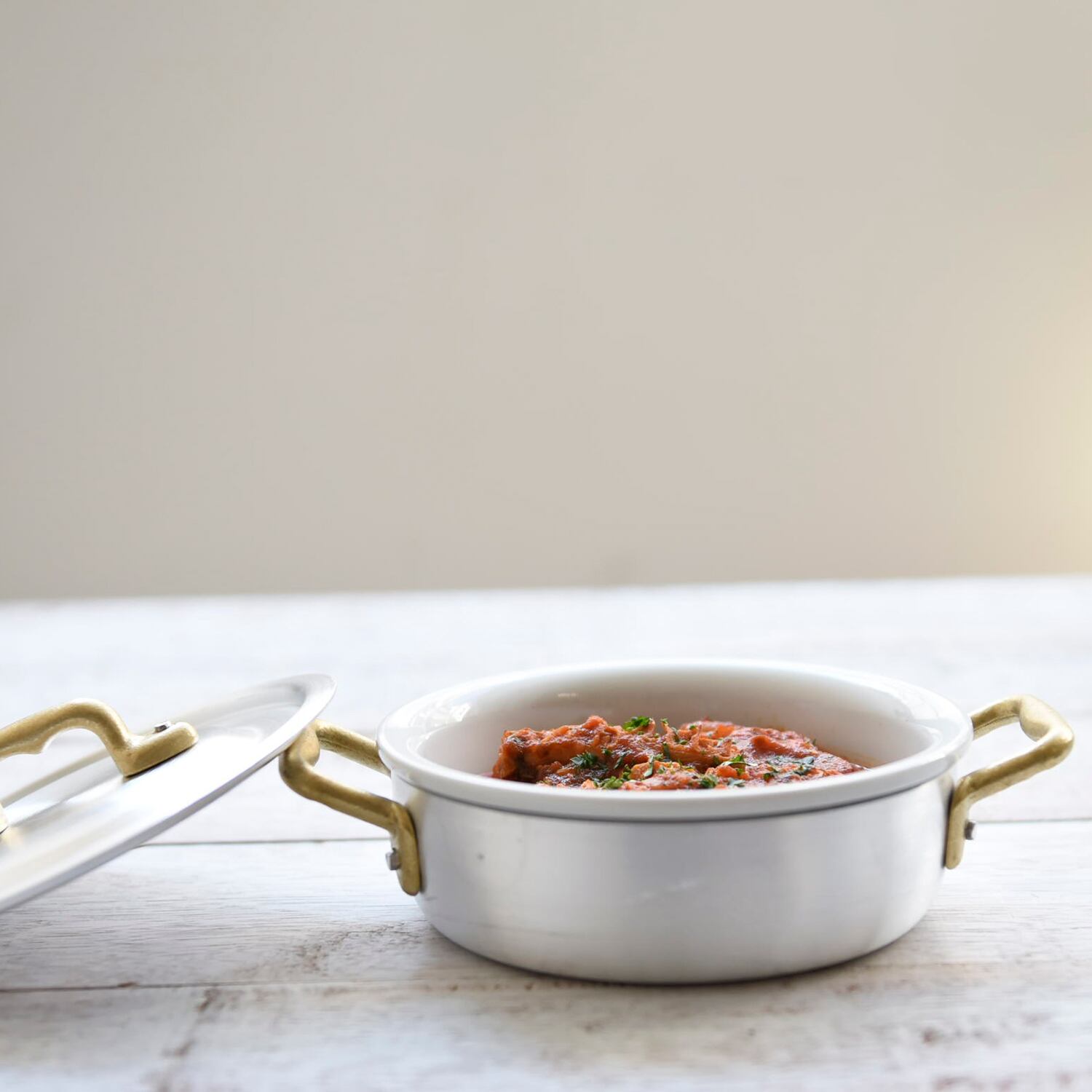 デザイン性の高い、両手鍋とセラミックポットのセット。鍋は直火にかけられ、セラミックポットはオーブン、電子レンジの使用が可能。グラタンやアヒージョなど、出来立ての料理をそのままテーブルに出せば、温かいままいただけます!