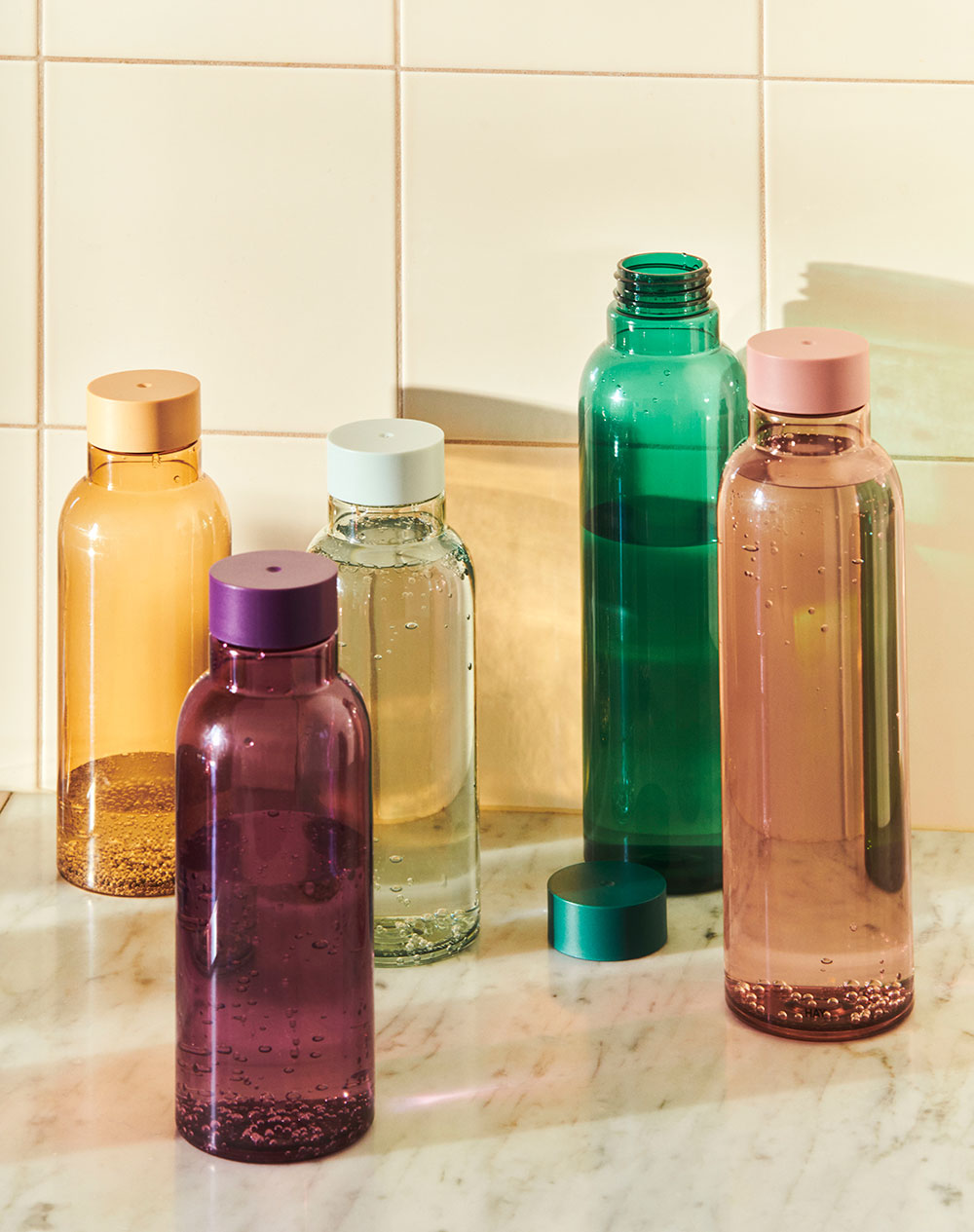 「HAY/ヘイ」のカラフルでおしゃれなウォーターボトルは持ち歩きにぴったり。リサイクルPET製で、シリコンリングは取り外し可能なため簡単に洗うことができます。