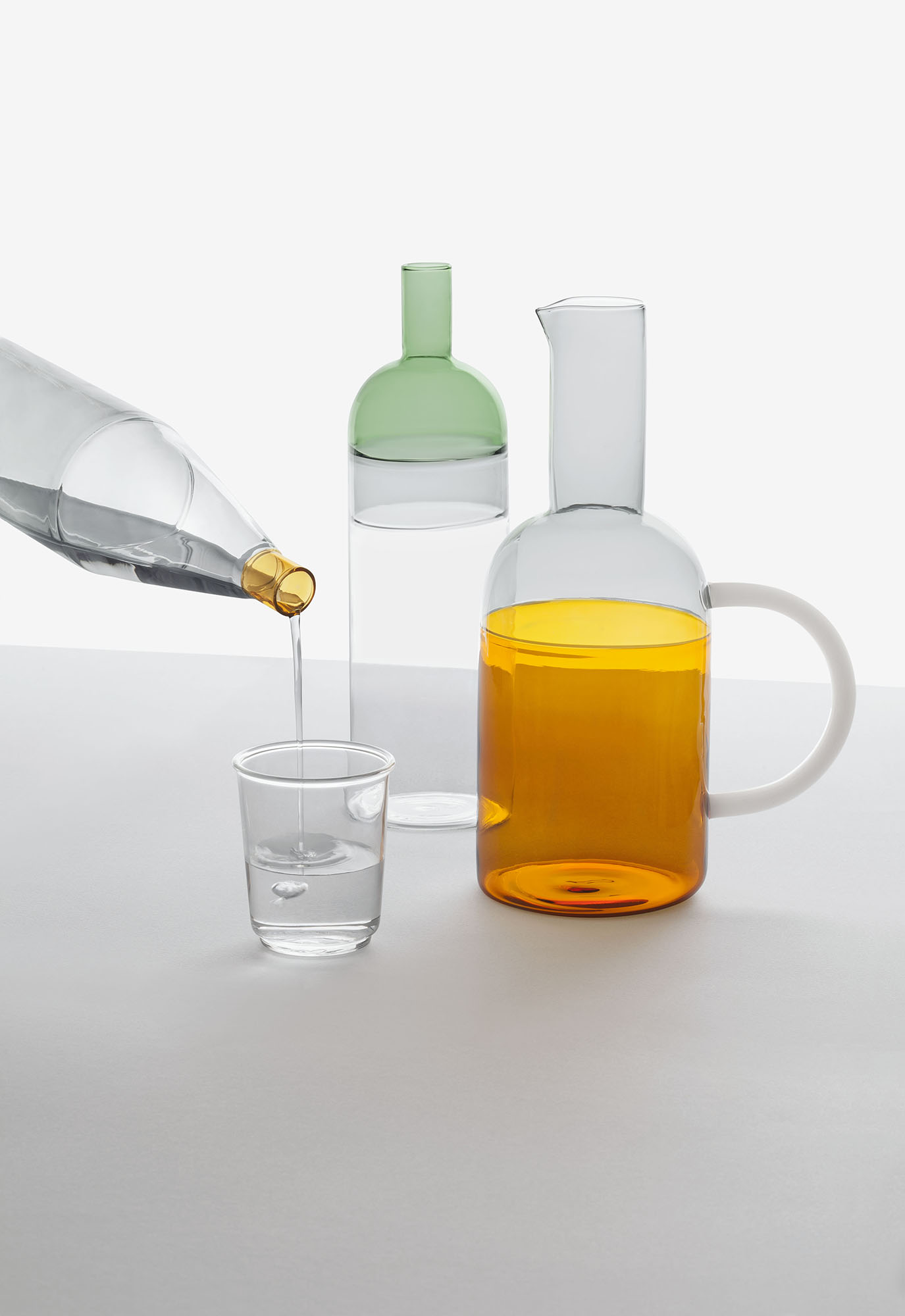人気北欧ブランド「HAY/ヘイ」のガラス製の水差しは、熟練したガラスアーティスト、ヨッヘン・ホルツがデザイン。カーブしたハンドルが特徴的で、フラワーベースとして使ってもおしゃれ。たたずまいの良い脚付きのグラスはおもてなしにもおすすめ!