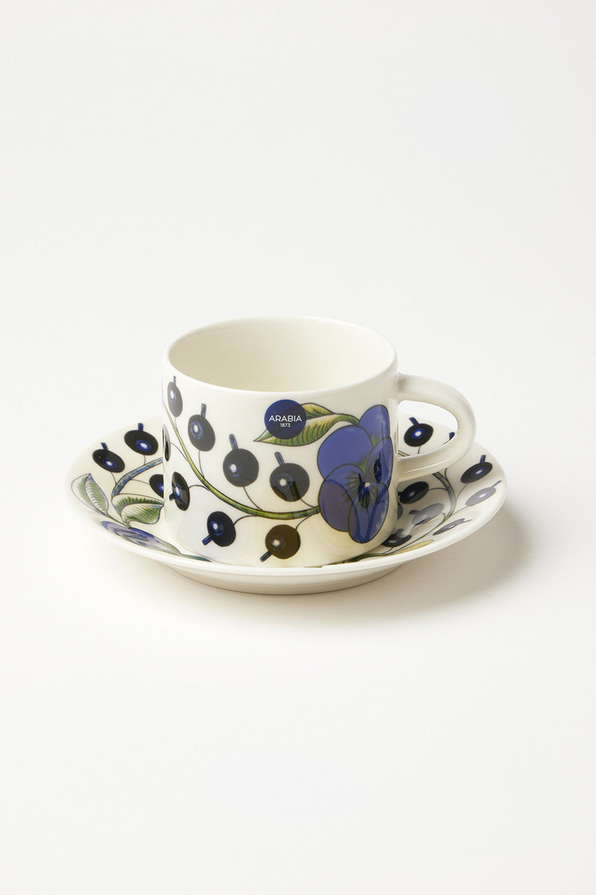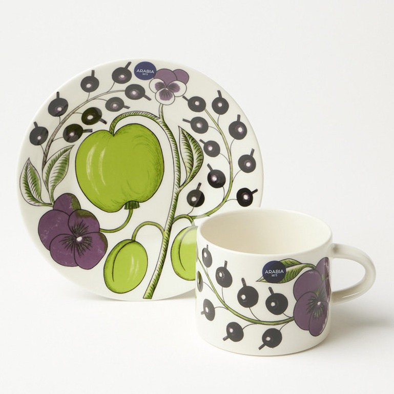 瑞々しい花々やフルーツのモチーフが華やかな名作「ARABIA/アラビア」の「パラティッシ」のカップ&ソーサーなら、毎日素敵なティータイムを過ごせそう。