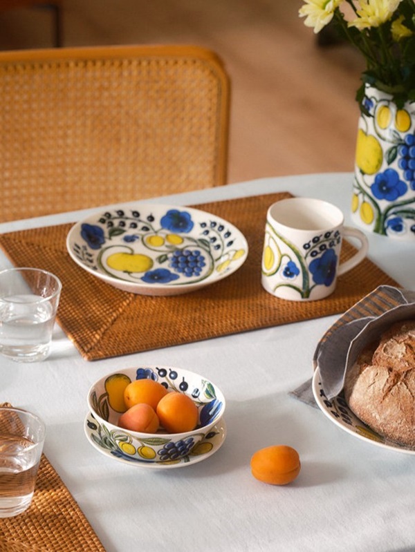 フィンランドのテーブルウェアブランド「アラビア」を代表する人気シリーズ。1969年の誕生以来、多くの人々に愛され続けてきたクラシックコレクション。果実や花々を鮮やかな色彩で描いたデザインで、濡れたようなツヤ感と深みのある色使いが印象的。日常の食卓が一気に華やぐ存在感は、北欧デザインファンならずとも、手にしたくなる逸品です。