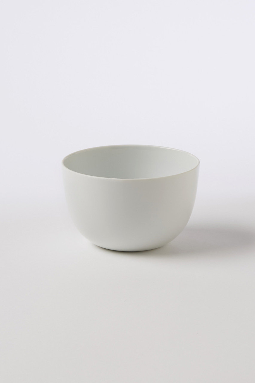「陶磁器の町・長崎県波佐見町で生まれた「HASAMI PORCELAIN/ハサミポーセリン」の14.5㎝サイズは、軽めの朝ごはんやひとり分を盛るのにぴったり。外側はコンクリートのようなマットな質感、内側は釉薬でコーティングされたつやのある仕上がりで、質感の異なるグレーが季節を問わずどんな料理にもなじみます。料理を盛る面はつるんとなめらかなので、カトラリーが引っかかりにくいという使い勝手のよさも。プレートはボウルの蓋としても使え、同サイズをセットで持って保存容器のようにも。385mlとたっぷり入るマグカップもお気に入り!」(エディターASUMI)