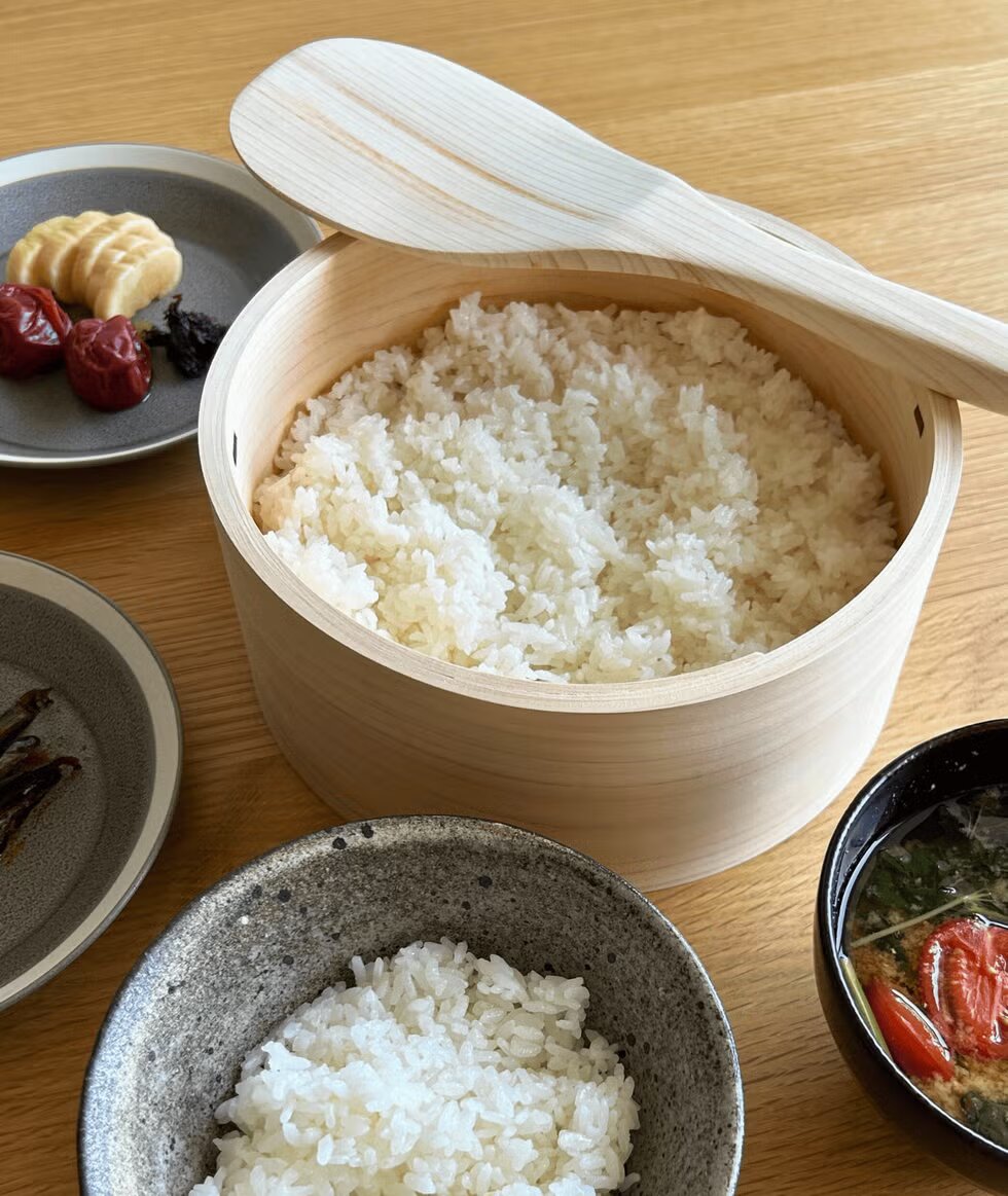 毎日の白米をよりおいしく味わいたくて、おひつを取り入れました。選んだのは、日本製・自然素材にこだわる和道具ブランド「にちにち道具」が手掛ける「曲げ輪のおひつ」。