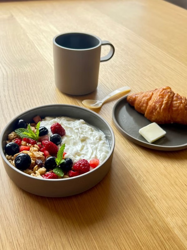 「青みのあるマットなオフホワイトとリムの立ち上がりが美しい「1616 / arita japan」の「TY Round Plate」シリーズ。ミニマルなフォルムですが、実は料理の包容力はピカイチで、プレーンなキャンバスのように、何を乗せてもサマになります。イングリッシュブレックファストのようなラフな朝食も受け止めてくれます!」(エディターYUKI)