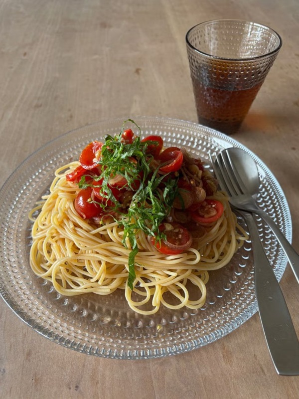 「シンプルなデザインでどんな器とも相性がいい「IITTALA/イッタラ」。なかでも暑いときに登場回数が増えるのが「カステヘルミ」コレクション。連なるガラスのしずくのようなデコレーションが印象的で、同じシリーズのタンブラーも愛用中。サラダやカルパッチョはもちろん、冷製パスタにもぴったり。クリアは食材を選ばないので一枚あると便利です。」(エディターSATOKO)