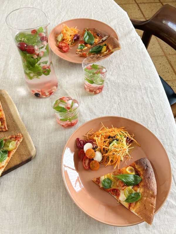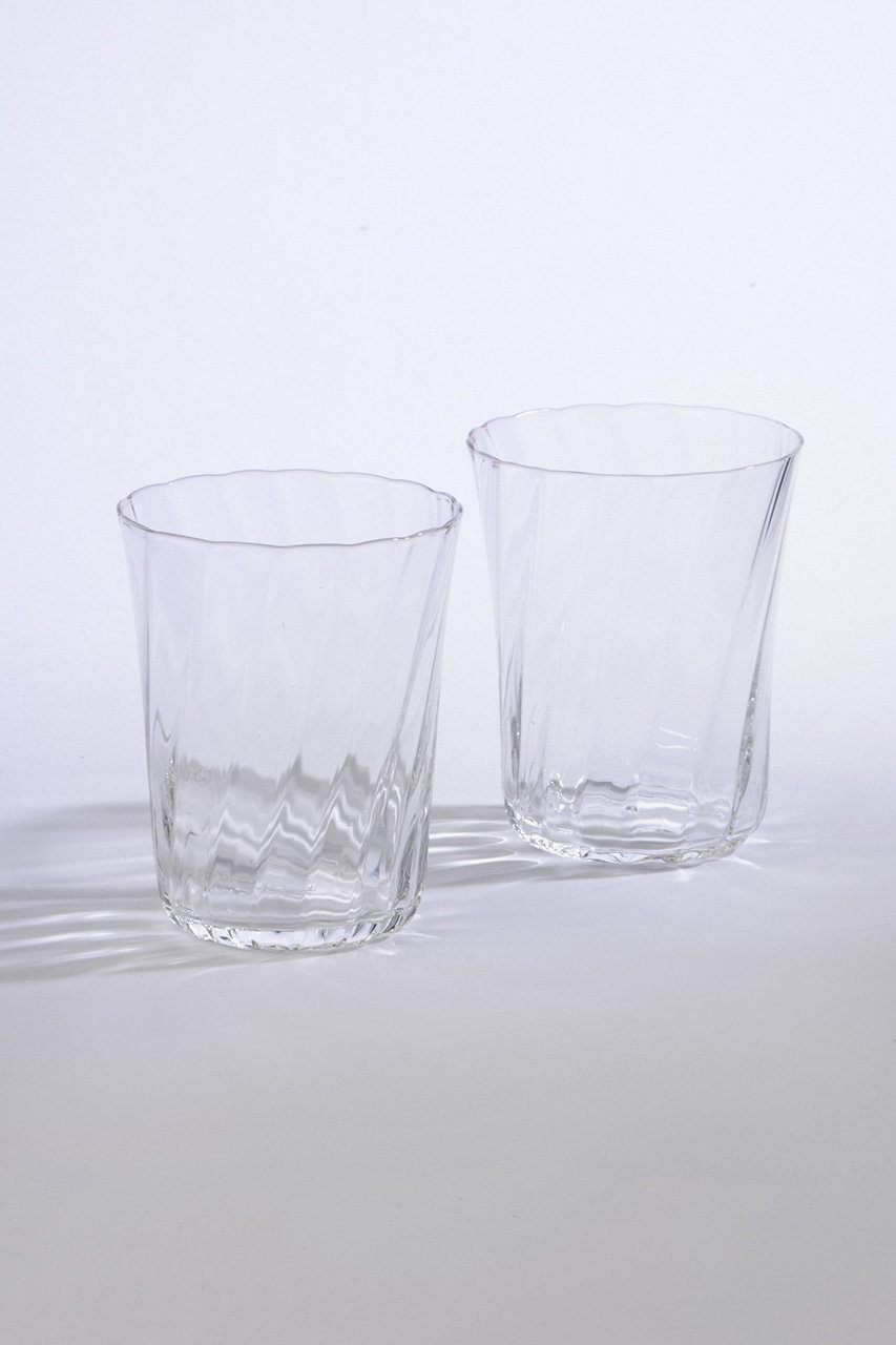 「デンマークを拠点に活動する、「STILLEBEN/スティルレーベン」は、日常に自然と溶け込むデザインと、やわらかな色合いのカラーリングで人気。幅広のリムがどんなメニューも美しく引き立ててくれます。グラスとカラフェは、ハンドメイドされたクリスタルガラス製。ストライプ模様の波のような表情が印象的です。ハーブやベリーを添えて、華やかな演出を楽しむのもおすすめ。」(エディターAYANO)