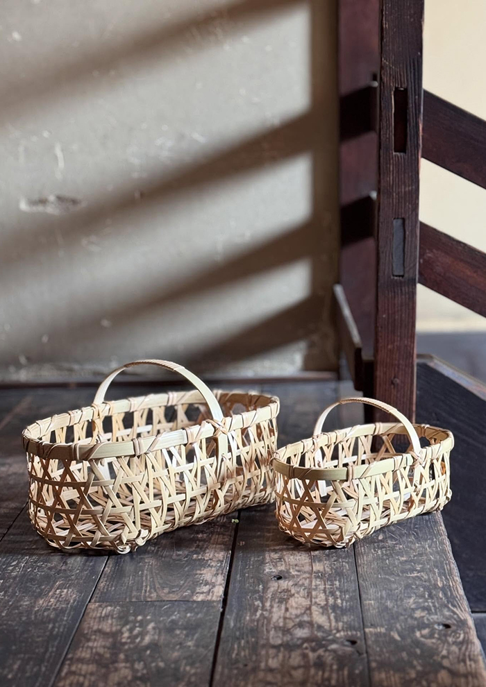 日本の手仕事の魅力を感じられる工芸プロダクトを手掛ける「koppa work and art/コッパワークアンドアート」。かごには果物や野菜、調味料やカトラリーを入れたり、「やたら平盛器」は蕎麦用や紙を敷いて天麩羅や日本料理の皿にしたりと、使い方は自由! 食卓に清涼感を加えてくれます。