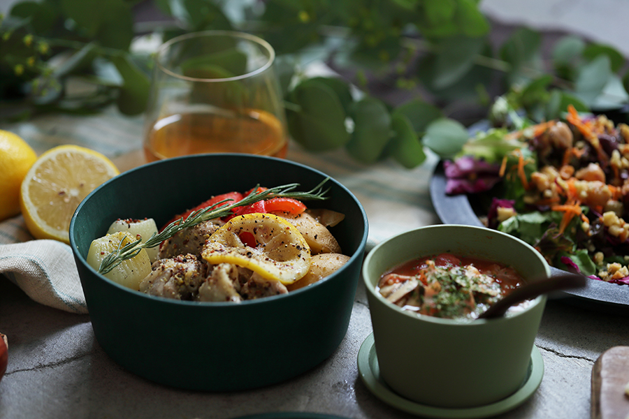 電子レンジで調理が完了できてそのまま食卓に出せる「9°/クド」は、なるべく火を使いたくない暑い日の料理にぴったり。蓋を閉めてそのまま保存もでき、食洗機も使えるから、毎日の調理や片付けの手間が少なくなります!