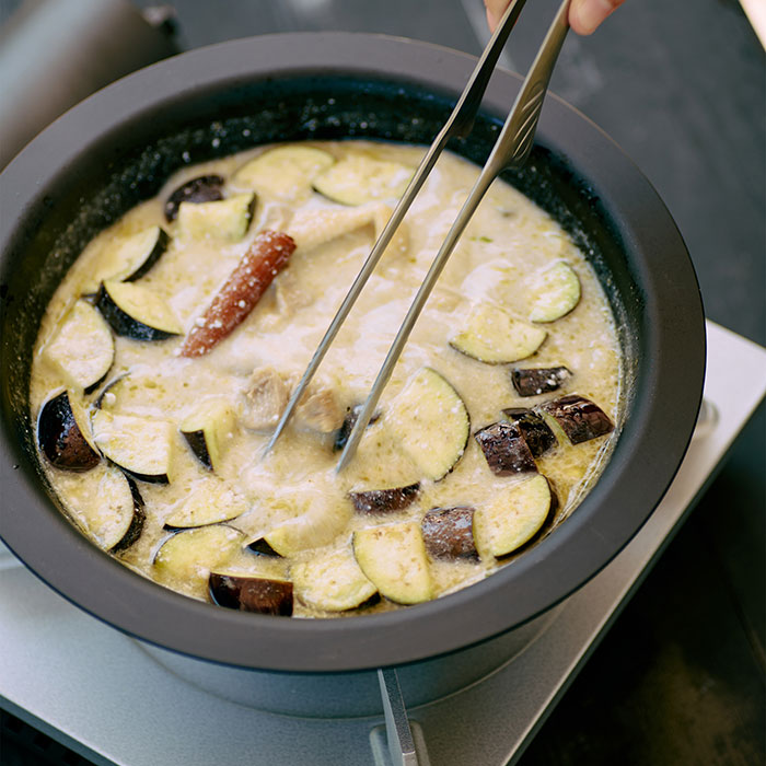 熱伝導率の良い人気の「直火鍋」に、具だくさんの調理にも対応できる深さをプラスし容量もアップした「直火深鍋」。定番の「φ250直火鍋」とスタッキングも可能でコンパクトに収納できるので、荷物がかさばるアウトドアに最適です。