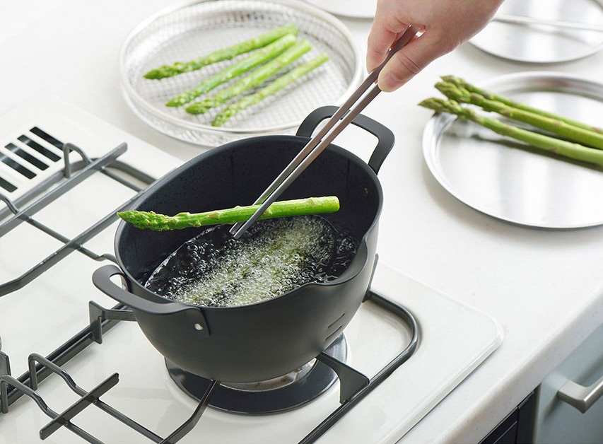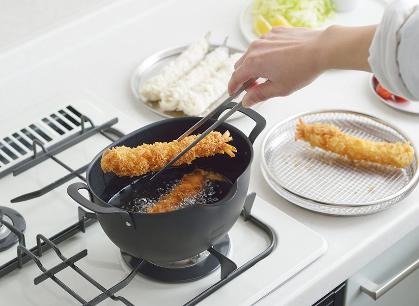 日々の暮らしをより豊かにするための道具「aikata/アイカタ」。新潟県燕三条地区の技術を駆使した鉄製揚げ鍋は、ボリュームのあるカツやエビ、魚のフライ等も余裕をもって調理でき、使用後はコンパクトに収納できる楕円形で、小ぶりながら深さがありストレス無く使えるサイズ感。これを使えば揚げ物へのハードルが低くなること間違いなし!