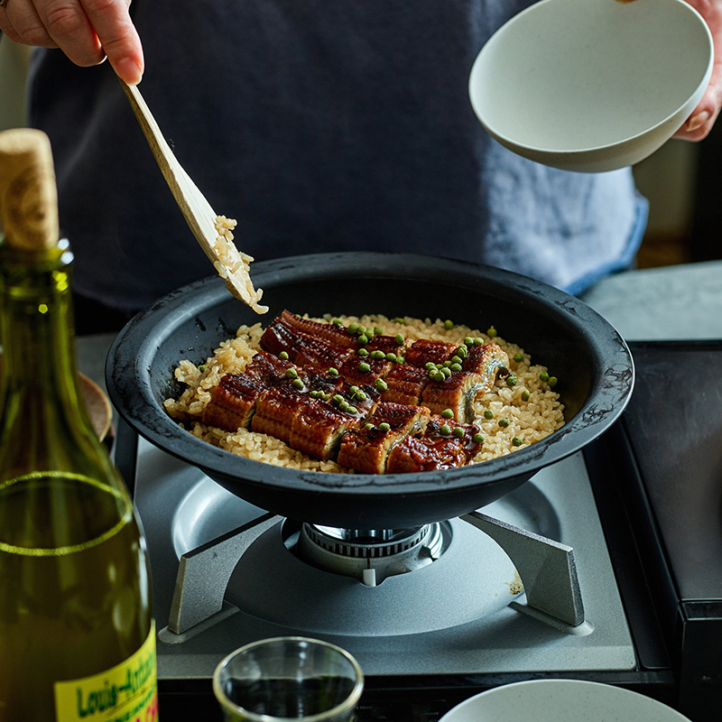 使い込むほどにデニムのような風合いの変化も楽しめる、直火可能なテーブルウェア「HEGE/ヘゲ」。軽量で扱いやすく、食卓で気負わず使えるのが魅力です。また、庭やウッドデッキで外の風を感じながらごはんを食べる特別な時間のツールとしても◎。