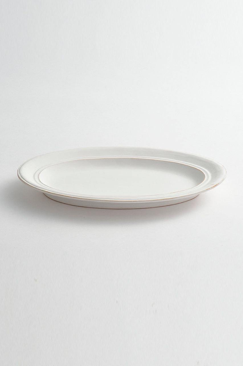 瀬戸の「かしわ窯」との取り組みによって誕生した「スティル」シリーズ。額縁をイメージしてデザインされたレリーフが特徴的。アンティークのような雰囲気で、置くだけでダイニングの空気が変わります。プレートは深さがないデザインで、実寸より小ぶりな印象で使いやすい器です。