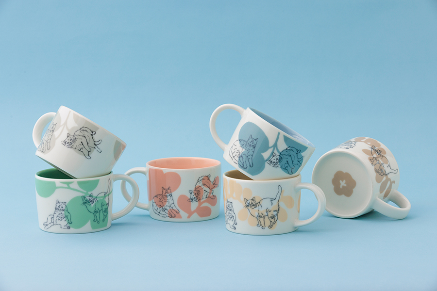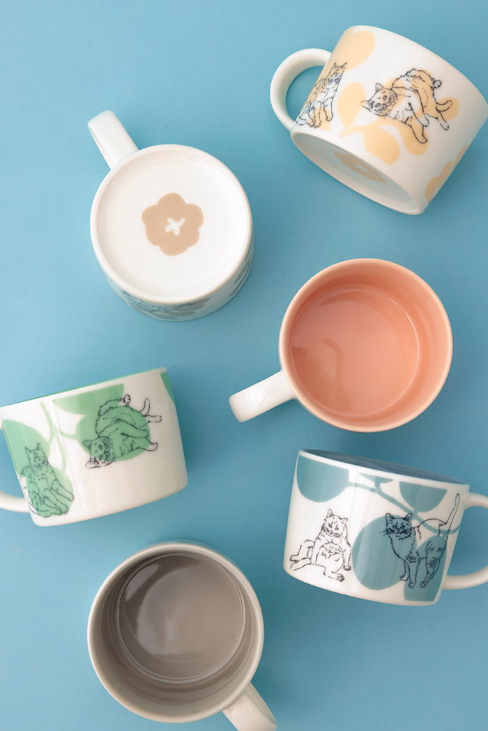 瀬戸で作家として活動している内村七生さんとコラボレーションしたシリーズ。猫と暮らす内村さんのならではの、愛らしい猫の姿と草花をあしらったチャーミングなマグカップ。全て1個箱に入っているので、ギフトとしてもおすすめです。