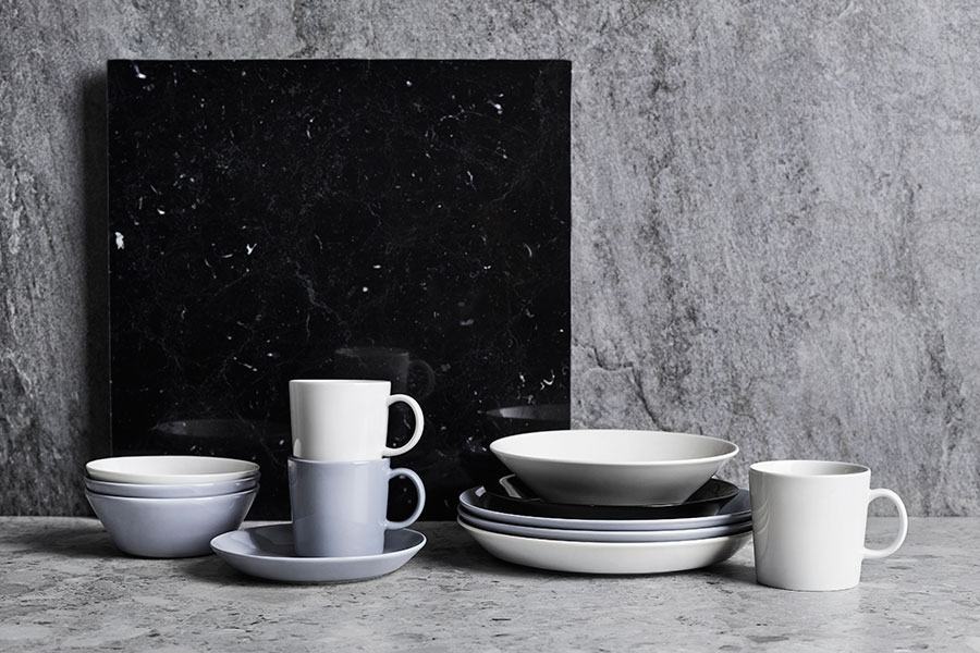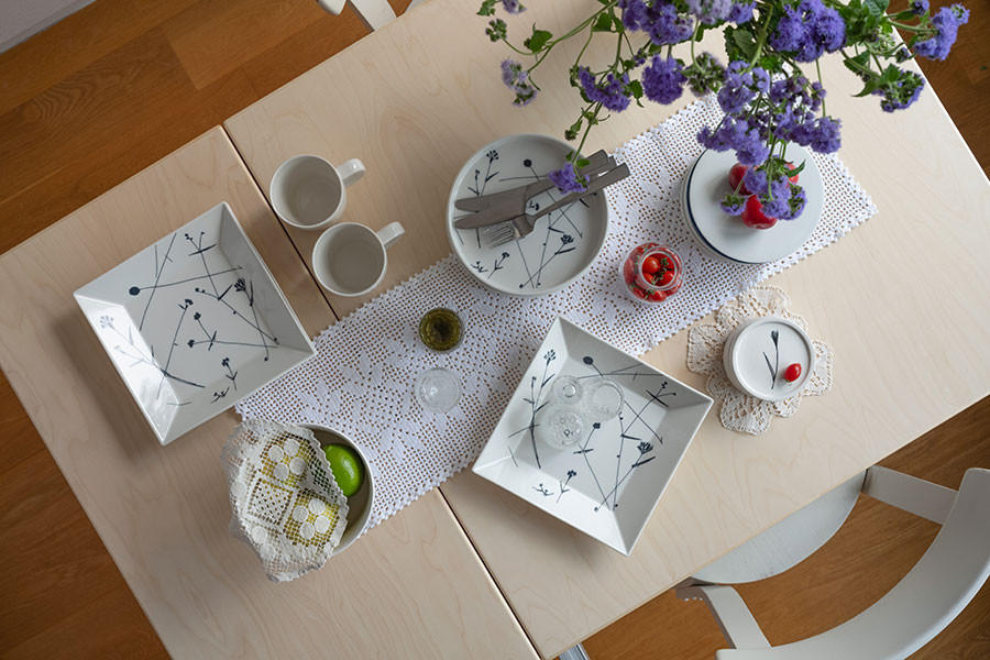 「マリメッコ」で長く活躍した日本人デザイナー、石本藤雄さんによる、日本とフィンランドの自然や風景が感じられる「ムスタキビ」のテーブルウェア。シンプルで無駄のないフォルムはテーブルコーディネートを格上げしてくれます。