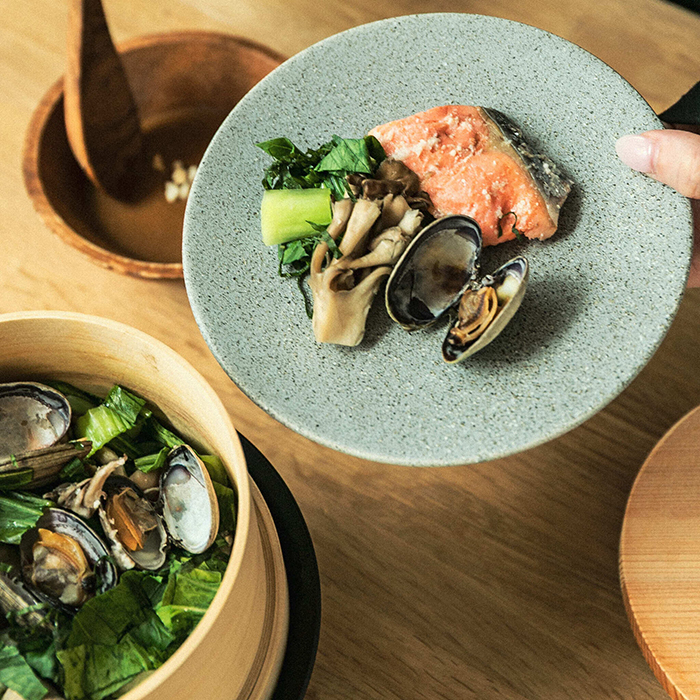 直火可能なテーブルウェア「ヘゲ」。食卓の上で料理を完成させて、料理をいただいあとの片付けも簡単、という、作る人も食べる人もみんなで楽しむことを目指したプロダクト。熱伝導率が良いので、時短料理にぴったり。鍋料理やおでん、パスタなどの麺料理ほか、お米を炊くこともできるので、身体に優しい料理をテーブルの上で手軽に仕上げられます。