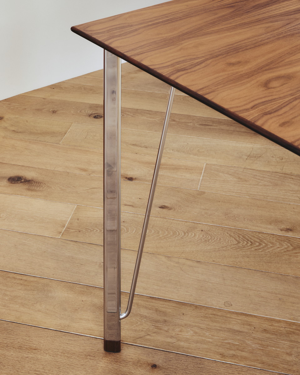 ここ数年、マット仕上げの金属パーツが大きなトレンドになっていましたが、個人的にグロッシーな仕上げに注目しています。特に「FH3605™」に目が留まりました。「ヤコブセンのテーブルといえば脚の美しさですよ」と名取大輔さん。先端に木製パーツを使用した、たいへん美しい仕上げでほれぼれしてしまいました。