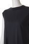 120番手の極細の糸で編まれた高級感のあるシルクのカットソー素材。シルクは吸湿、放湿に優れている天然の高機能素材で肌さわりもとても滑らかなので、蒸し暑い時期も快適に過ごせそう。上品な光沢感なのでTシャツながらとてもきれいめな印象に。