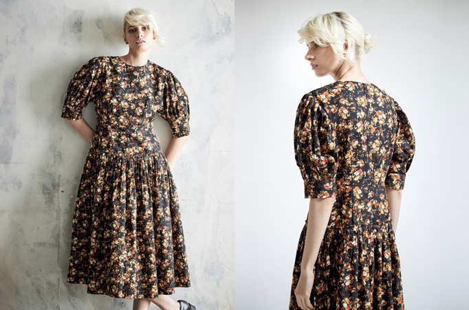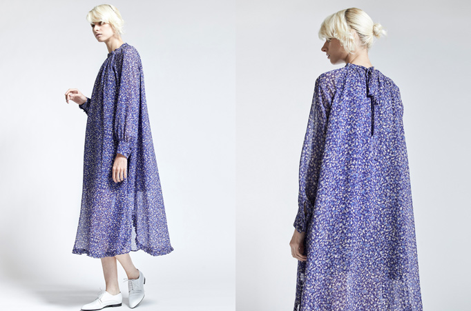 こちらは上でご紹介したノーブルフラワープリントのドレスタイプ。ふんわりしたフィット&フレアーのシルエットで女性らしい一着。同じプリントでも色味が異なるだけで全く別の雰囲気に。ドレスはブラックのみの展開です。