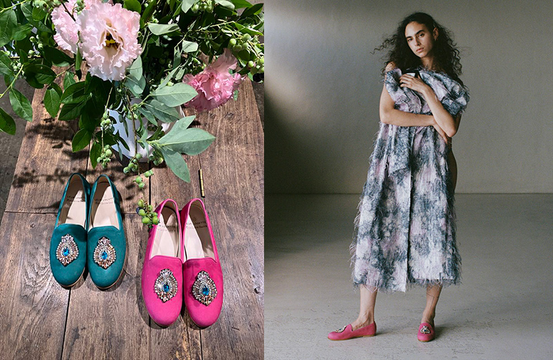 柔らかくしなやかな足なじみのよい牛側を使用したフラットシューズ。トップのモチーフがジュエリーのような特別なデザインです。