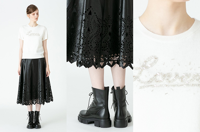 >>【予約販売】【LOULOU WILLOUGHBY】フェイクレザーパンチングスカート