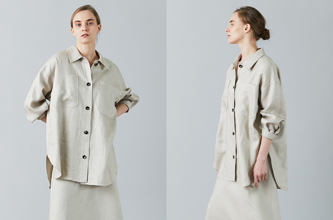 フランスリネンを使用した、高密度ツイルでシワになりにくくソフトな風合いのCPOジャケット。今季らしくビックボリュームに、丈も長く設定しています。シャツはOUTにして着るとリラックス感がでて、今の気分にマッチ。洗えば洗うほど味のでる上質な素材を使用しているので、経年変化を楽しみつつ長くお使いいただけます。