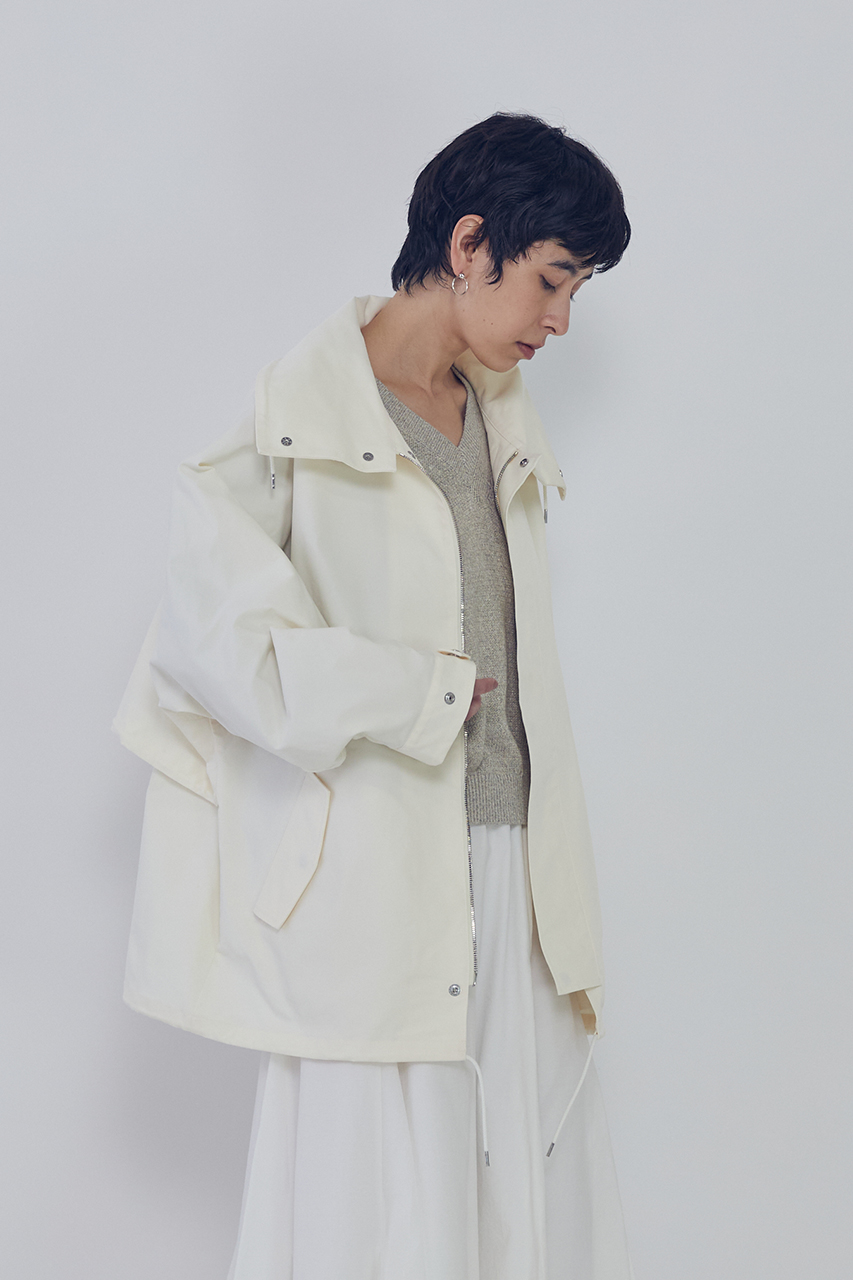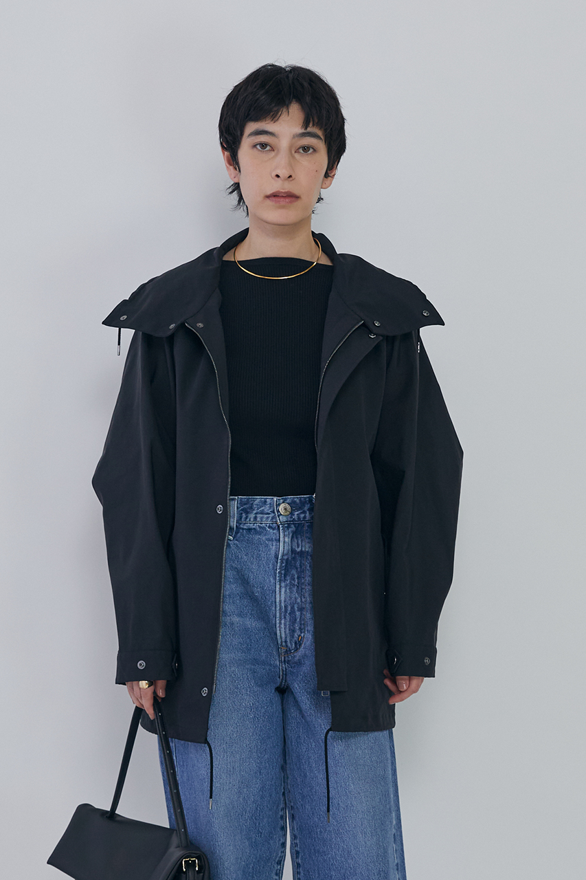 裾はドローコード仕様で、絞り具合によってシルエットの変化を楽しめる一枚。
