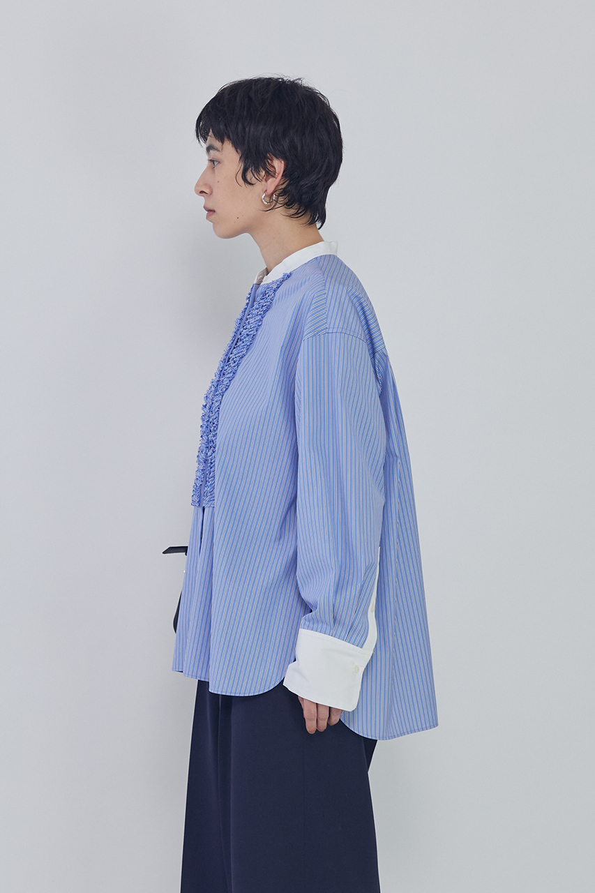 甘さを抑えた、大人のフリルバンドカラーシャツ。