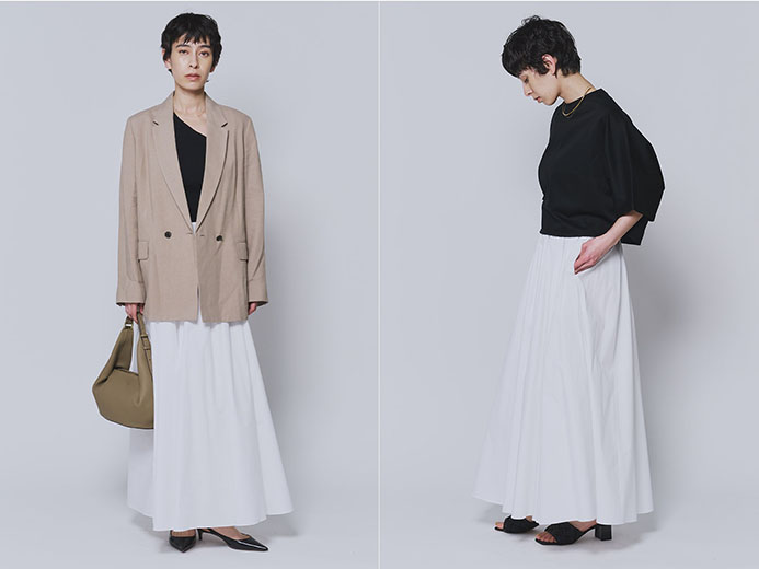 昨年ご好評いただいたタイプライタースカートをはじめ、装いにさりげない変化をもたらすアイテムがラインナップ。