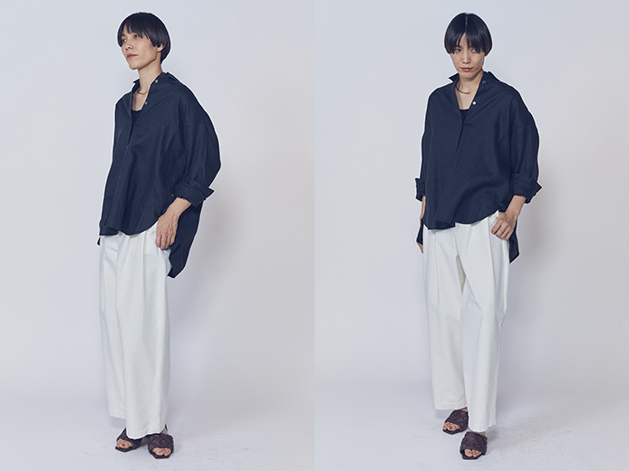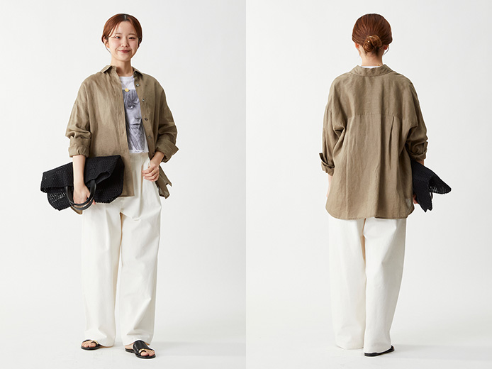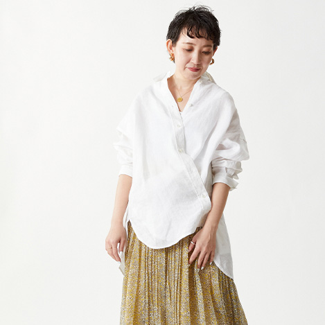 ナチュラルな風合いと着心地のよさで、毎年人気を集める麻100%シリーズが今年も登場! 洗いざらしでもサマになる手軽さに加え、セットアップでも楽しめる汎用性の高さも魅力。カシュクール仕様で着こなしのアレンジも自由自在、これからの季節に頼れる“リネンシャツ”の着回し術をご紹介します。