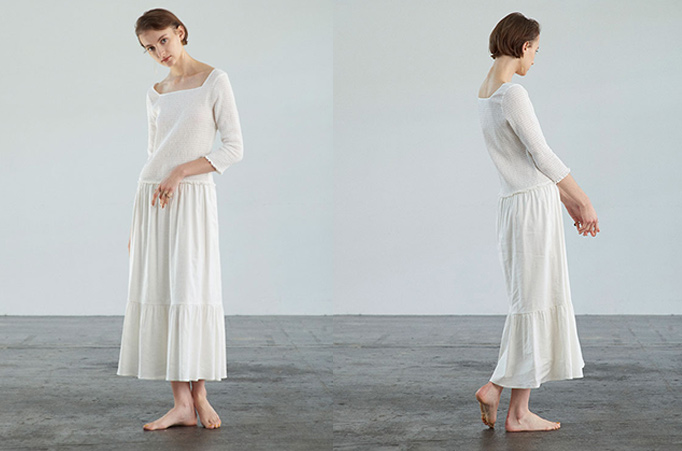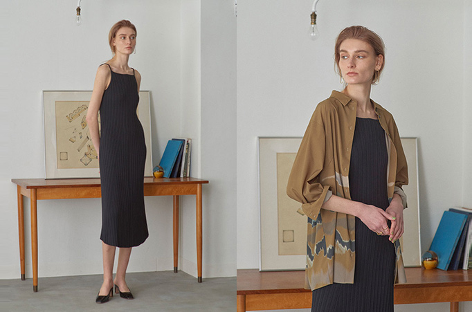 ランダムリブ編みで表情豊かに仕上げたニットドレス。アメリカンスリーブのようなヘルシーなデザインを採用、すっきりとしたIラインながら、裾に向かってゆるやかに広がるフレアシルエットが動くたびに揺れ動く女性らしいデザイン。身体のラインを拾いすぎないよう、ほどよいフィット感で仕上げた心地よい1着です。1枚でシンプルに着こなすのはもちろん、シャツやロングジレと合わせたロング&リーンな着こなしもおすすめです。