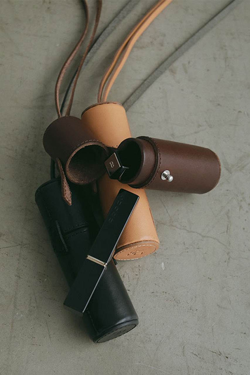 植物タンニンでなめしたヌメ革を使用、革小物専門の職人により、 硬く厚みのあるタンドレザーを1点1点整形しています。