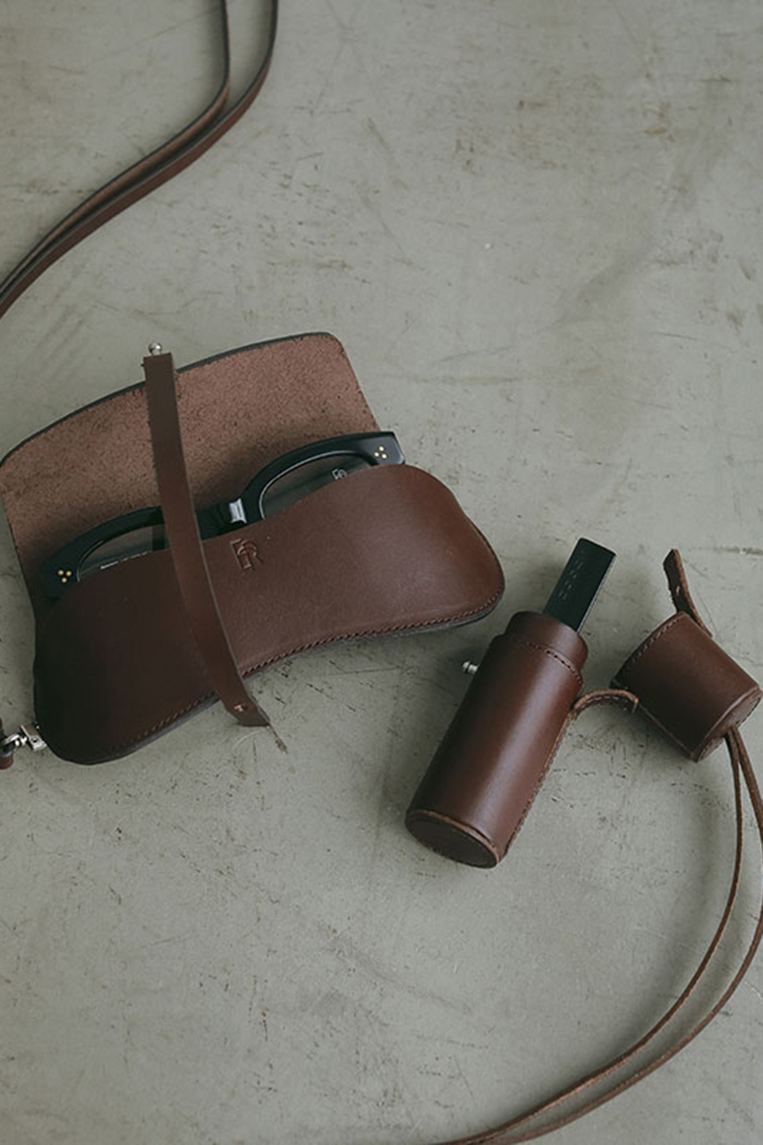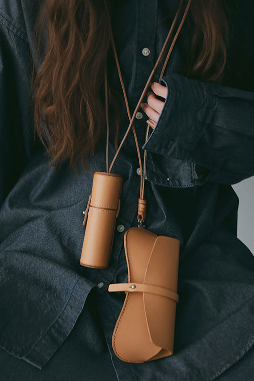 スタイリングにアクセントを加えるサングラスケーズ&レザーリップケース。