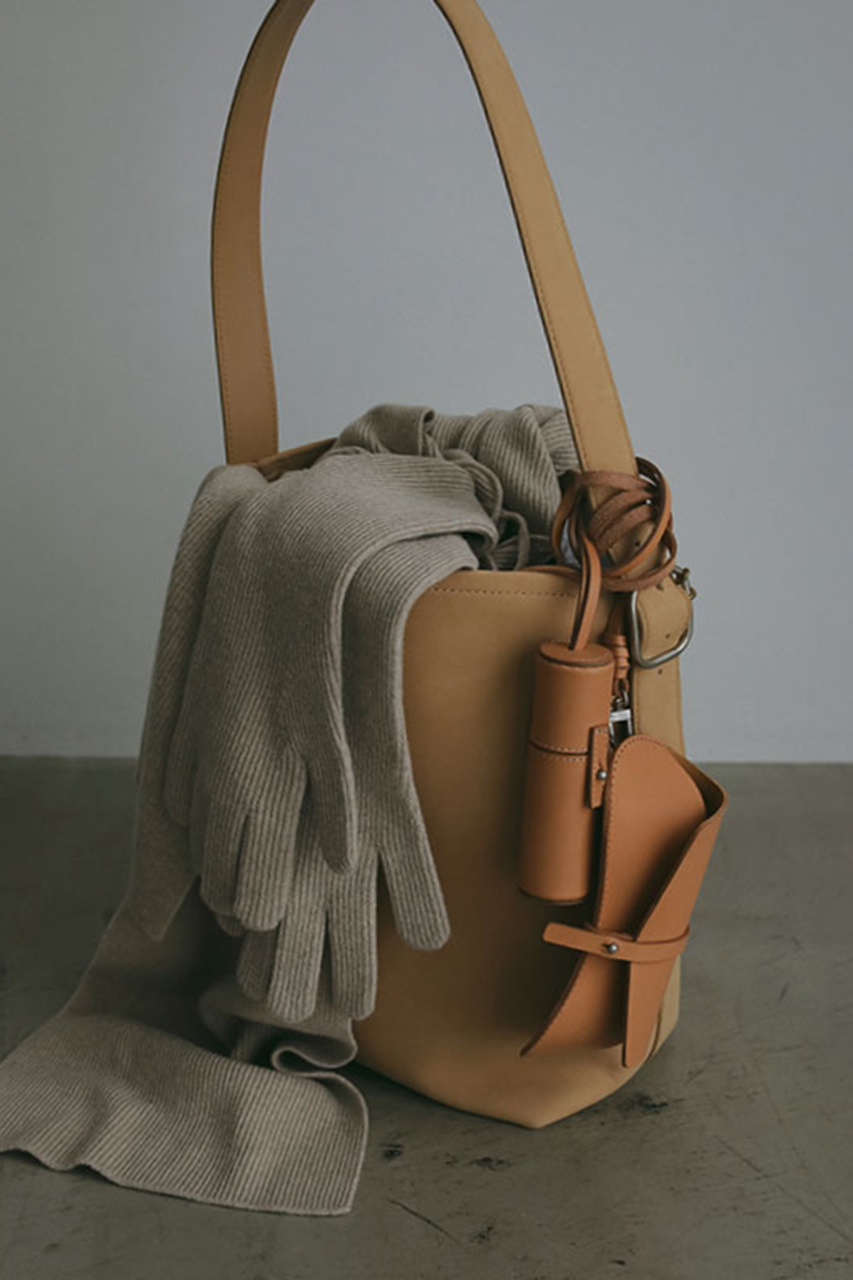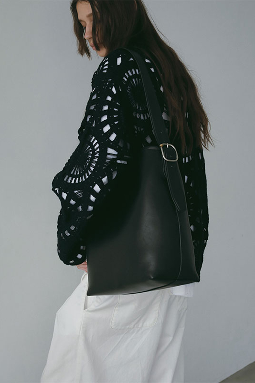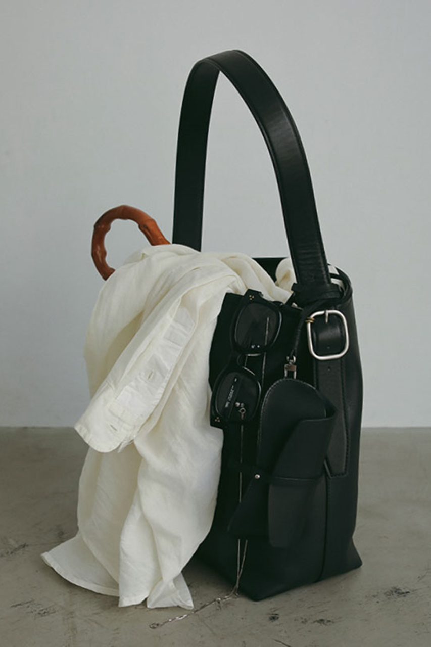 しなやかなシルエットが印象的な、ミニマルデザインのバケットバッグ。
