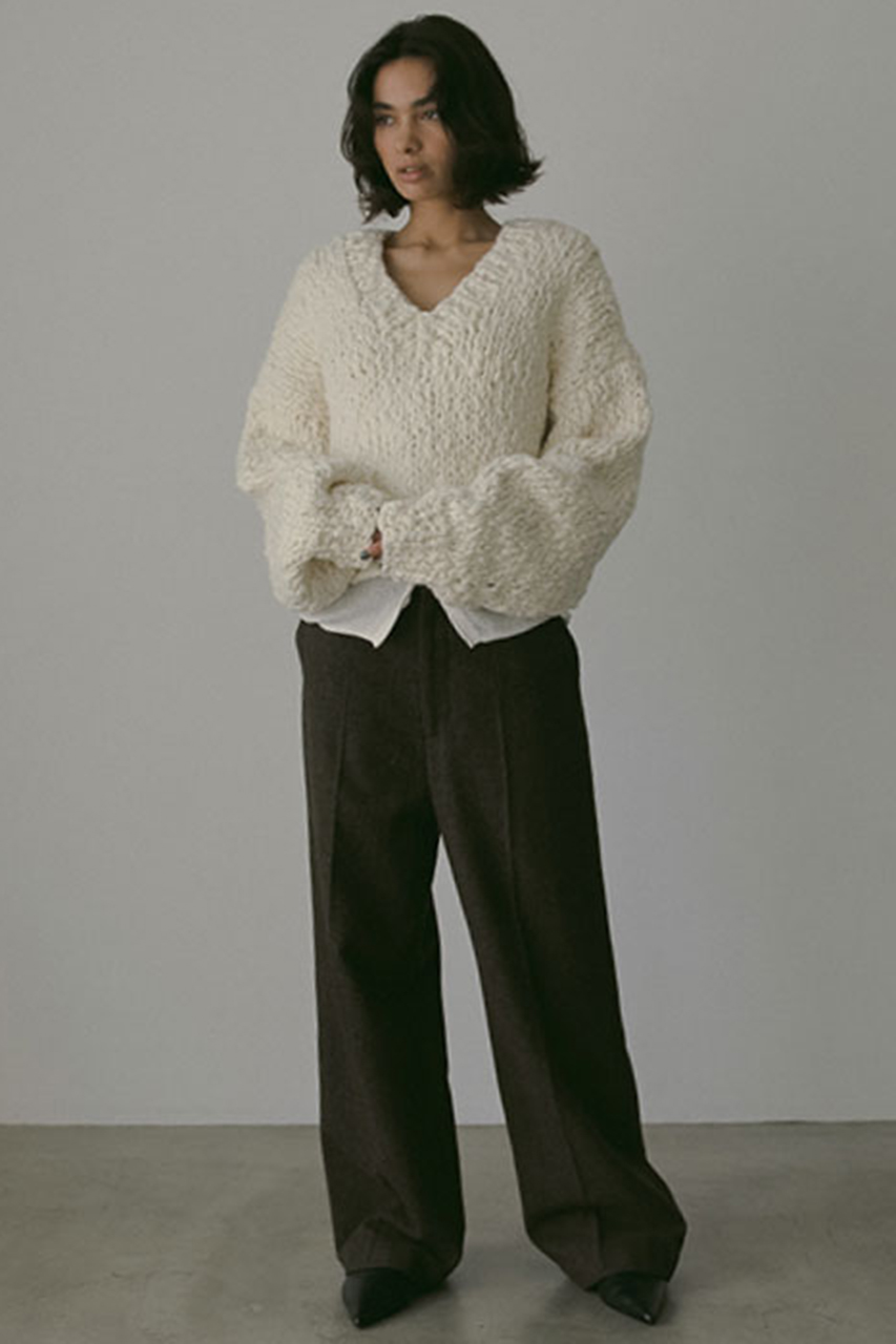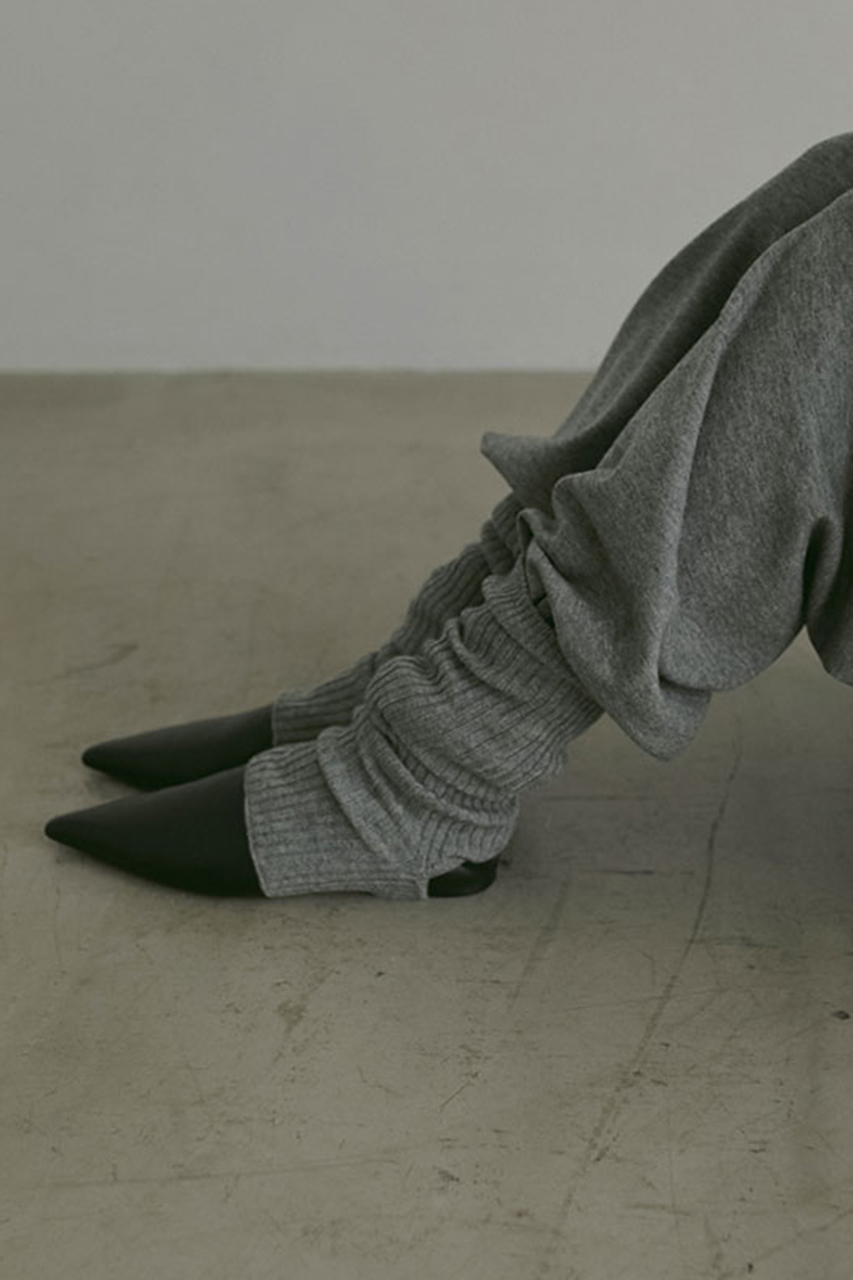 付属のリブ編みで仕上げたレッグウォーマーが、スタイリングの幅を広げるアクセントに。
